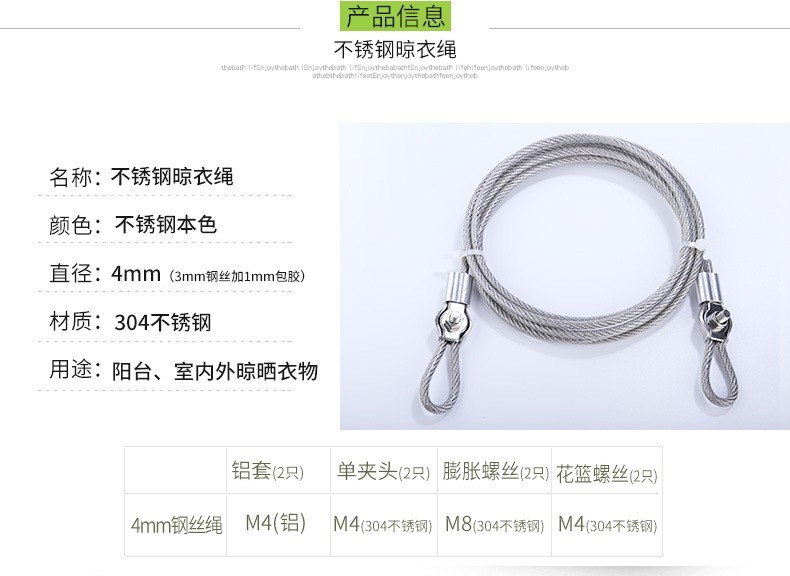 304 de acero inoxidable cuerdas de ropa a prueba de lluvia antiaoxidable corrosión interior y exterior cuerdas de colcha