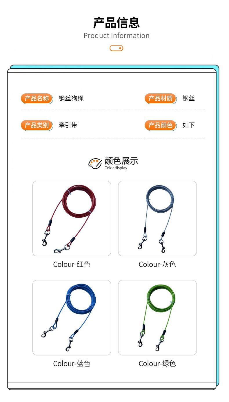 Cuerda para perros de dos cabezas, uno a dos cables de acero, cuerda de entrenamiento opcional multicolor, cuerda de tracción fija para perros personalizada por el fabricante