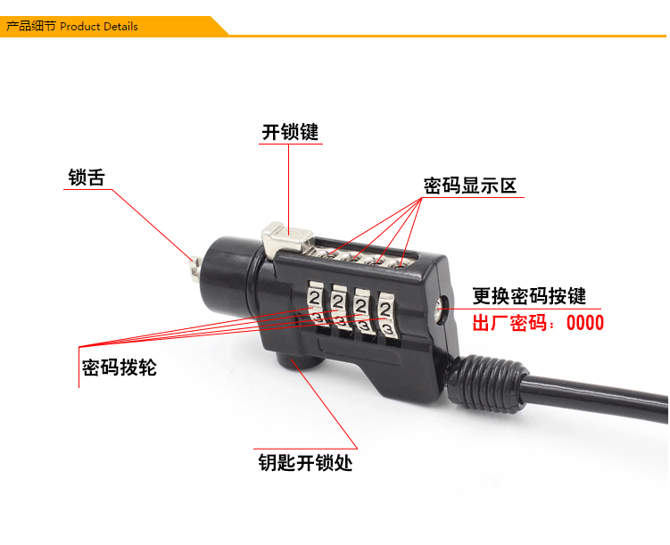 Candado antirrobo para portátil tipo cable de acero con llave, candado para llavero, candado mecánico de combinación de 4 dígitos, suministro directo de fábrica