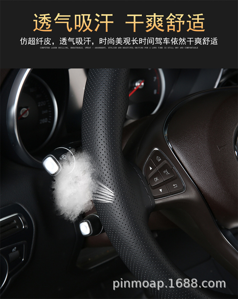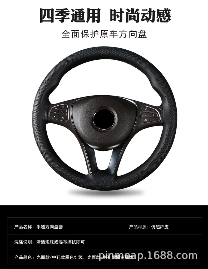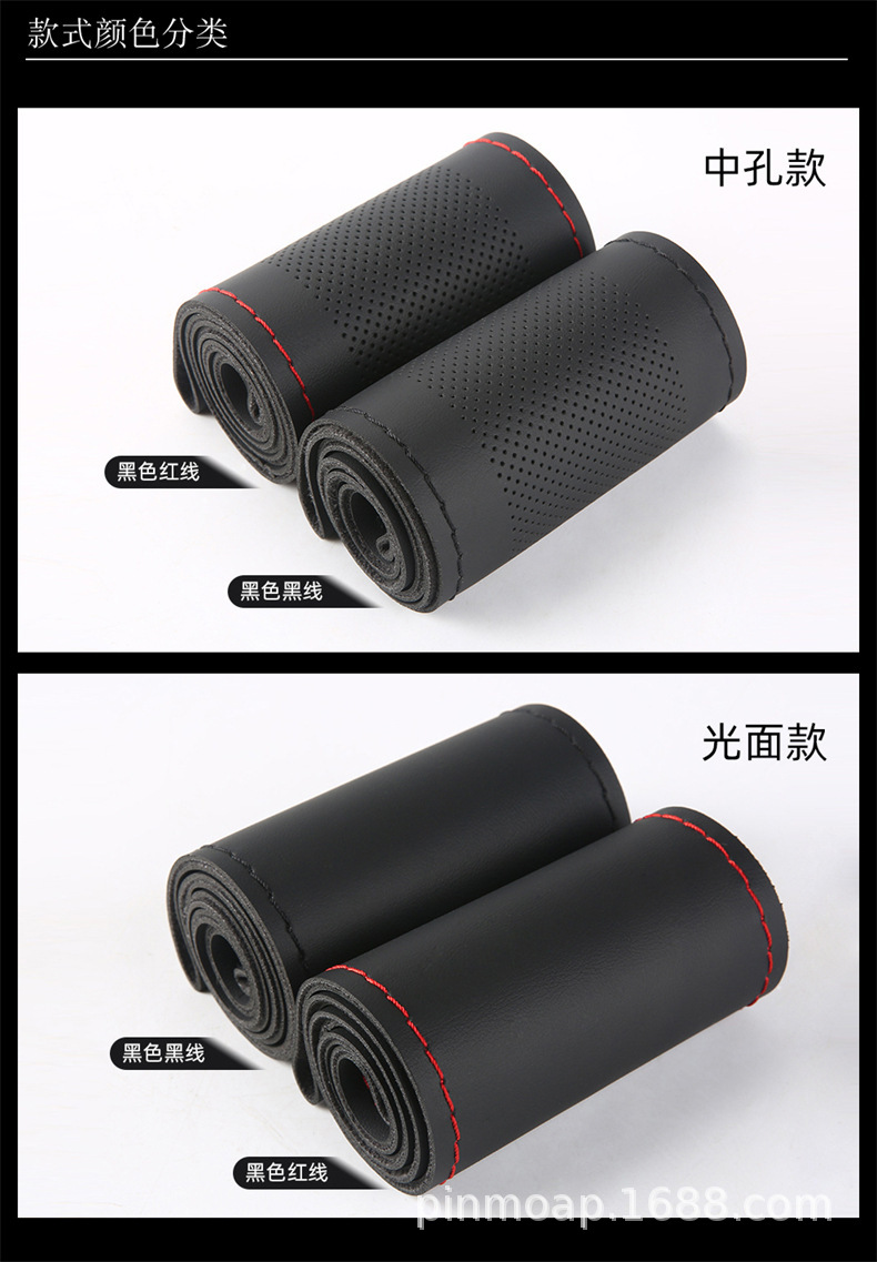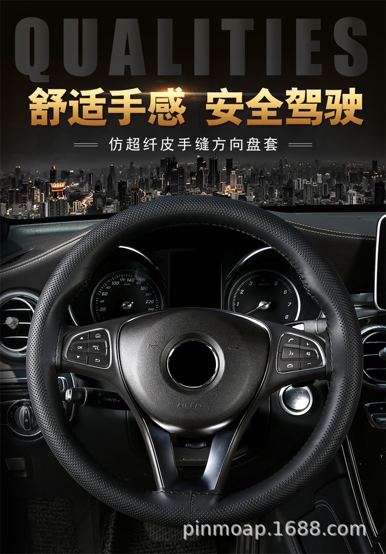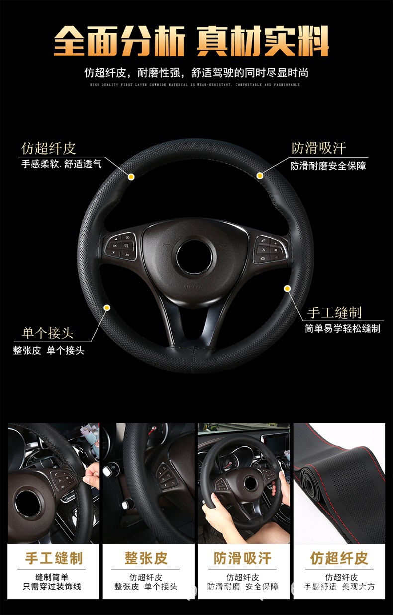 Fabricante de cubierta de volante de automóvil de fibra al por mayor de cuatro estaciones, cubierta de mango cosida a mano, nueva cubierta de cuero antideslizante y cómoda