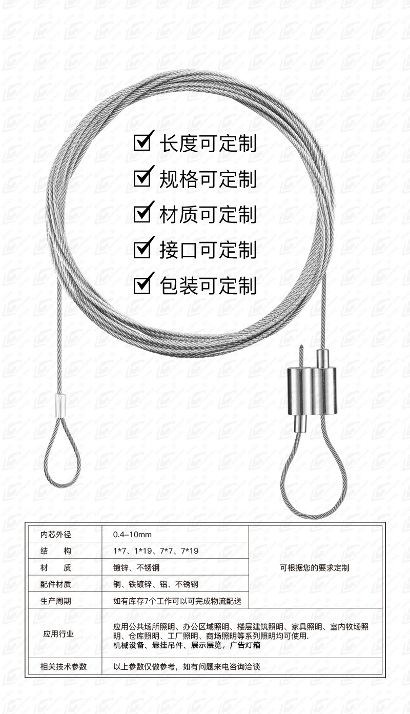 Fabricante de Cuerdas Resistentes para Colgar Lámparas Anti-caída, Cuerda de Acero para Electrodomésticos Inteligentes, Accesorios para Lámparas LED, Cable para Colgar Iluminación.