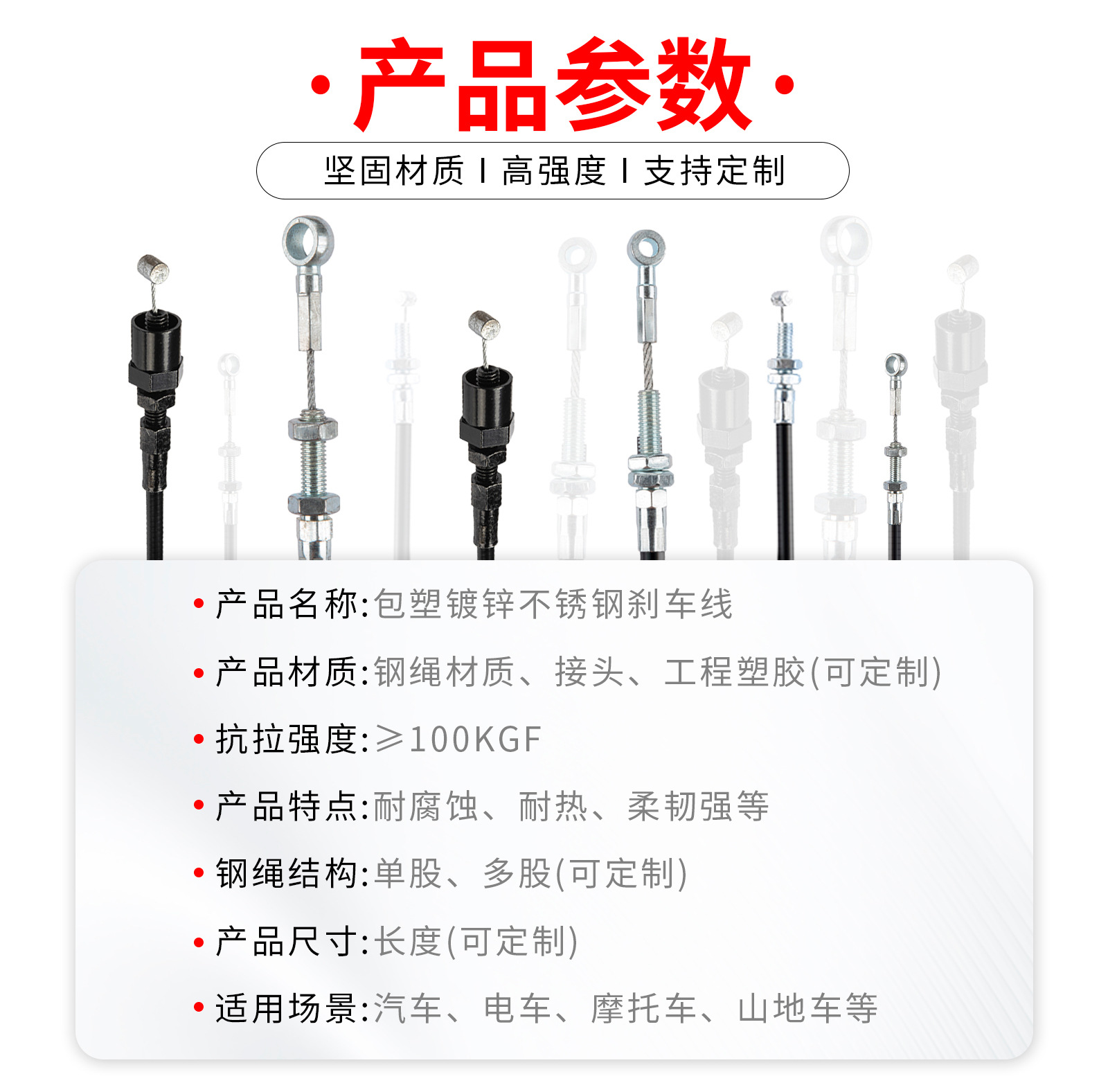 Suministro directo de fábrica de cables de freno de acero inoxidable galvanizado con revestimiento plástico para automóviles, cables de freno para bicicletas de montaña, cables de tracción para motocicletas y carretillas.
