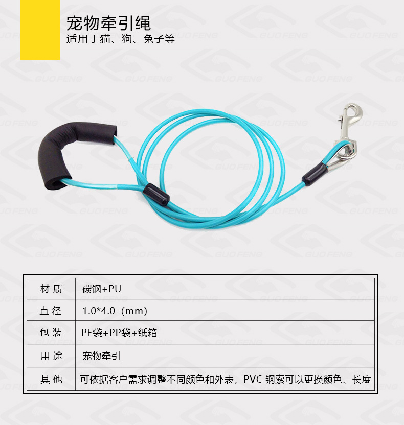 Suministro directo de fábrica suministros para mascotas cuerda de seguridad de alambre de acero anti-Perdida Amazon Cadena de perro de plástico perro cuerda de tracción para mascotas