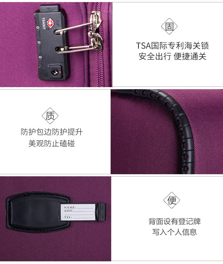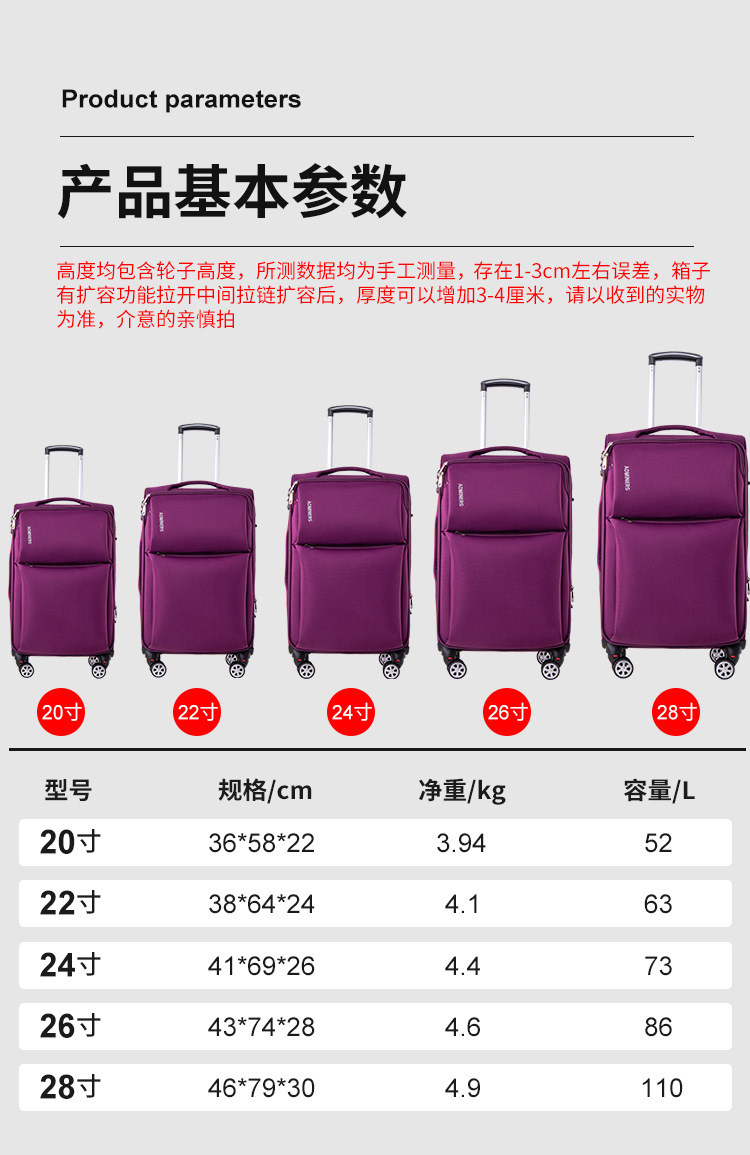 Equipaje de estudiante de tela Oxford de gran capacidad 20 24 maleta de 28 pulgadas maleta de embarque para hombres y mujeres entrega fuerte y duradera