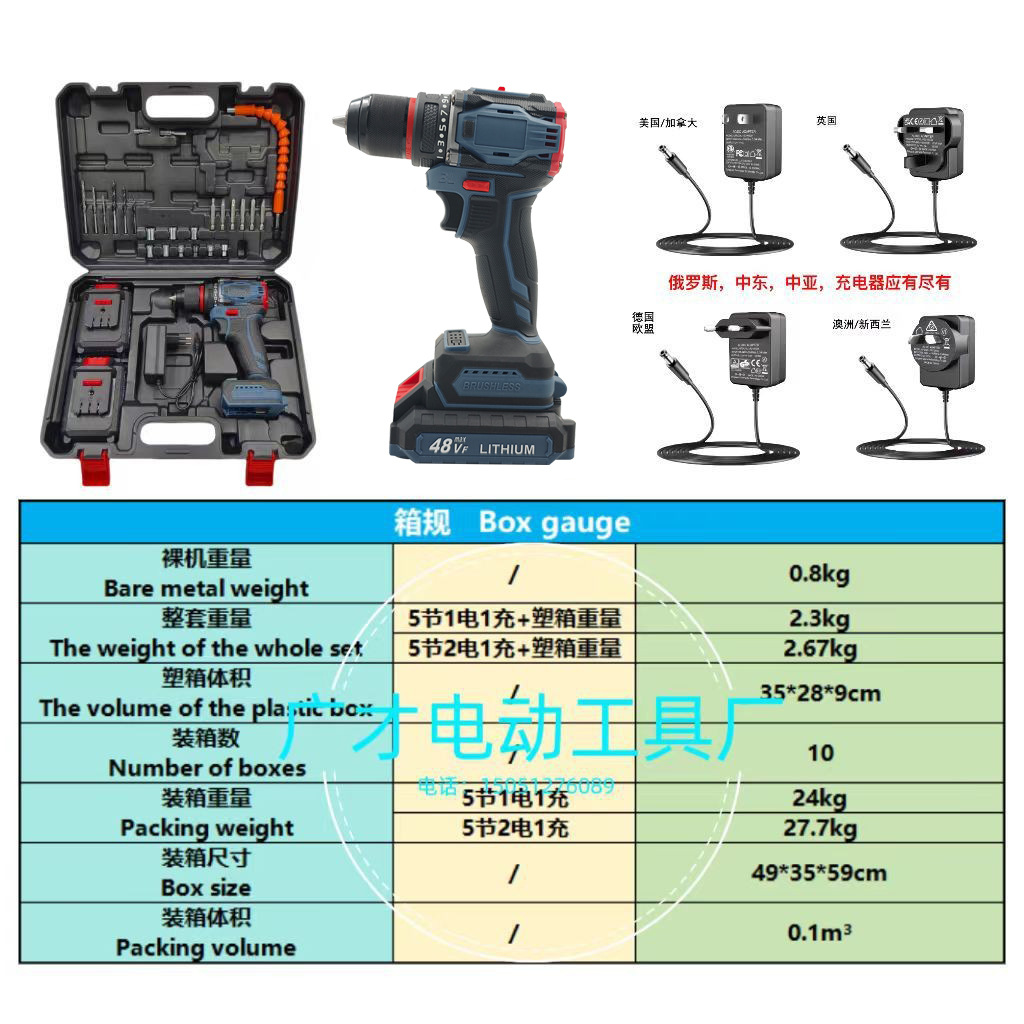 Taladro eléctrico de mano, cañón de acero pequeño sin escobillas, destornillador eléctrico de velocidad variable continua, herramienta eléctrica de comercio exterior transfronterizo