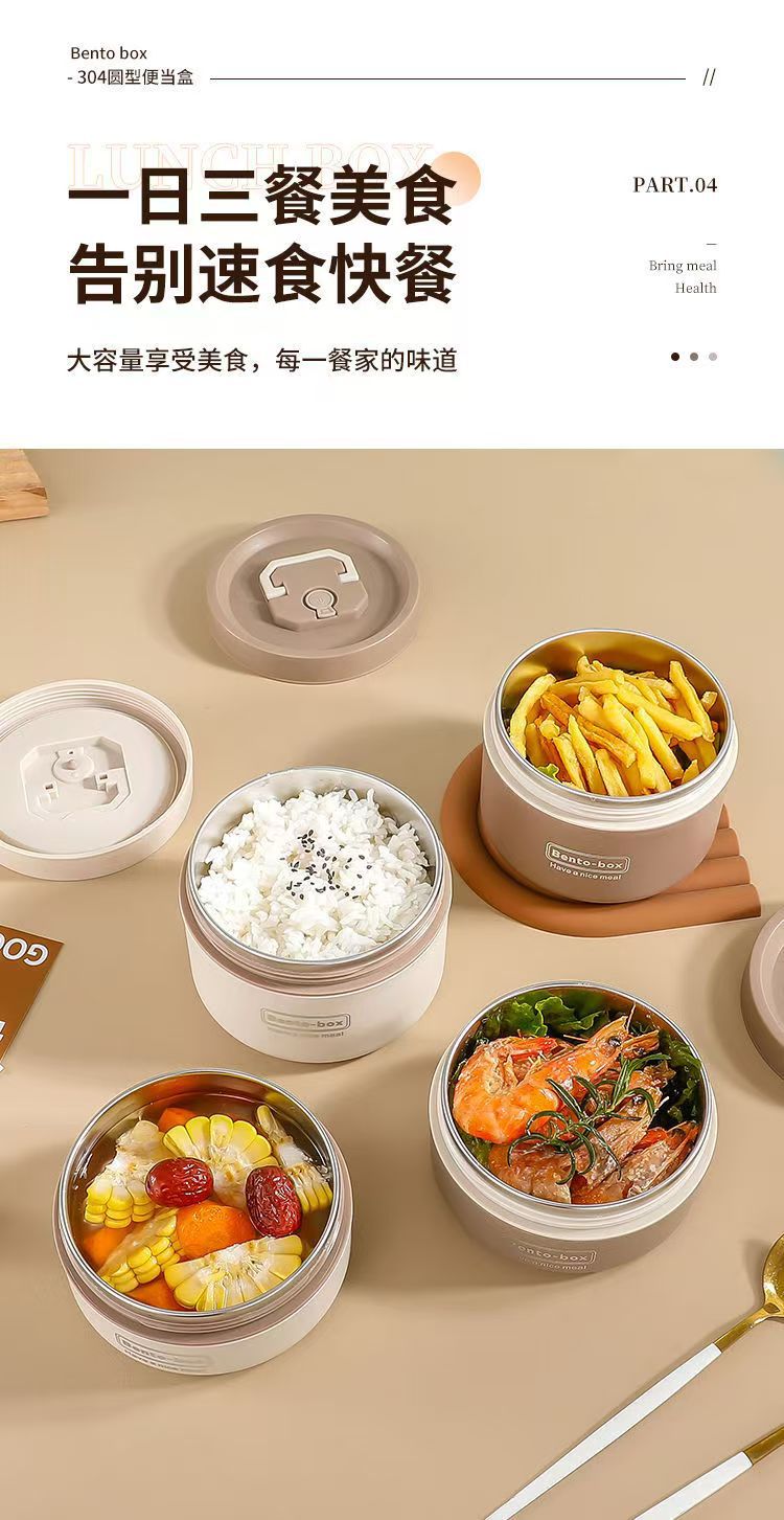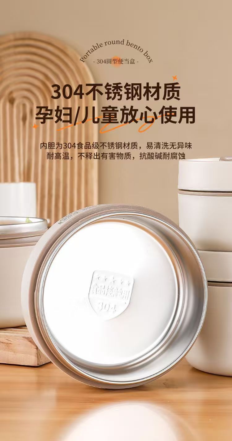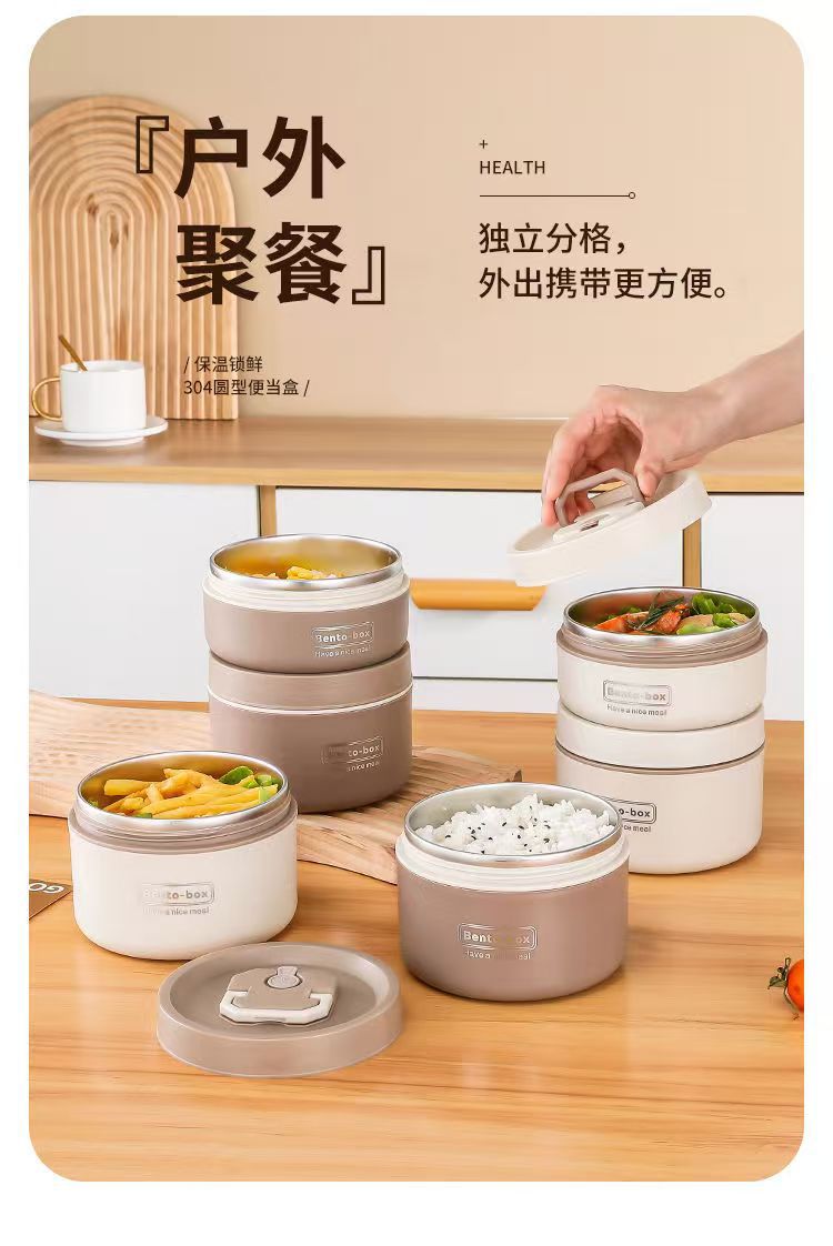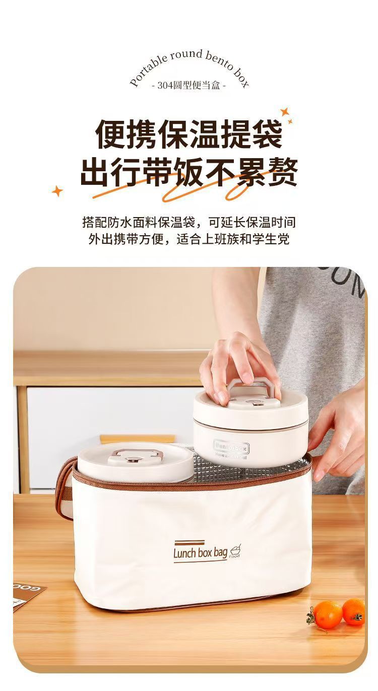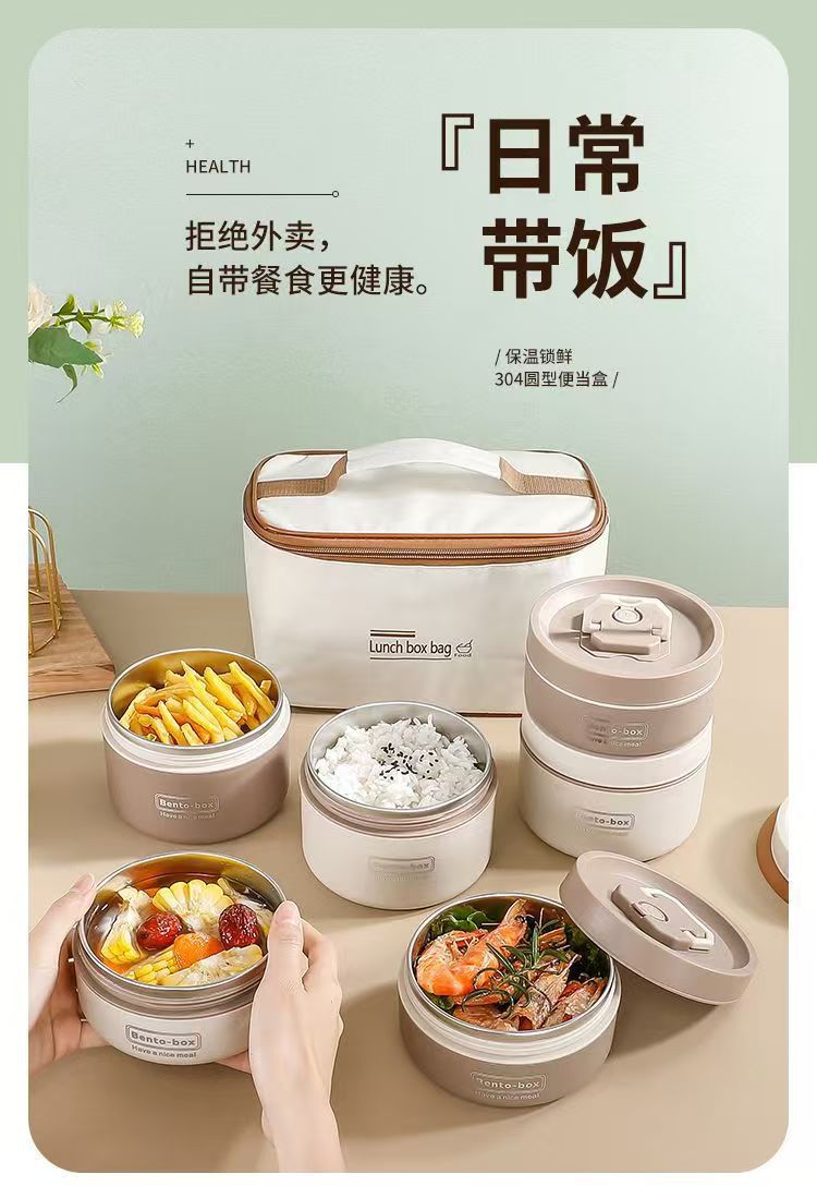 Caja de almuerzo de aislamiento de acero inoxidable, alumno redondo, cubo de almuerzo, bolsa de aislamiento, caja de almuerzo multicapa, caja de almuerzo portátil de aislamiento