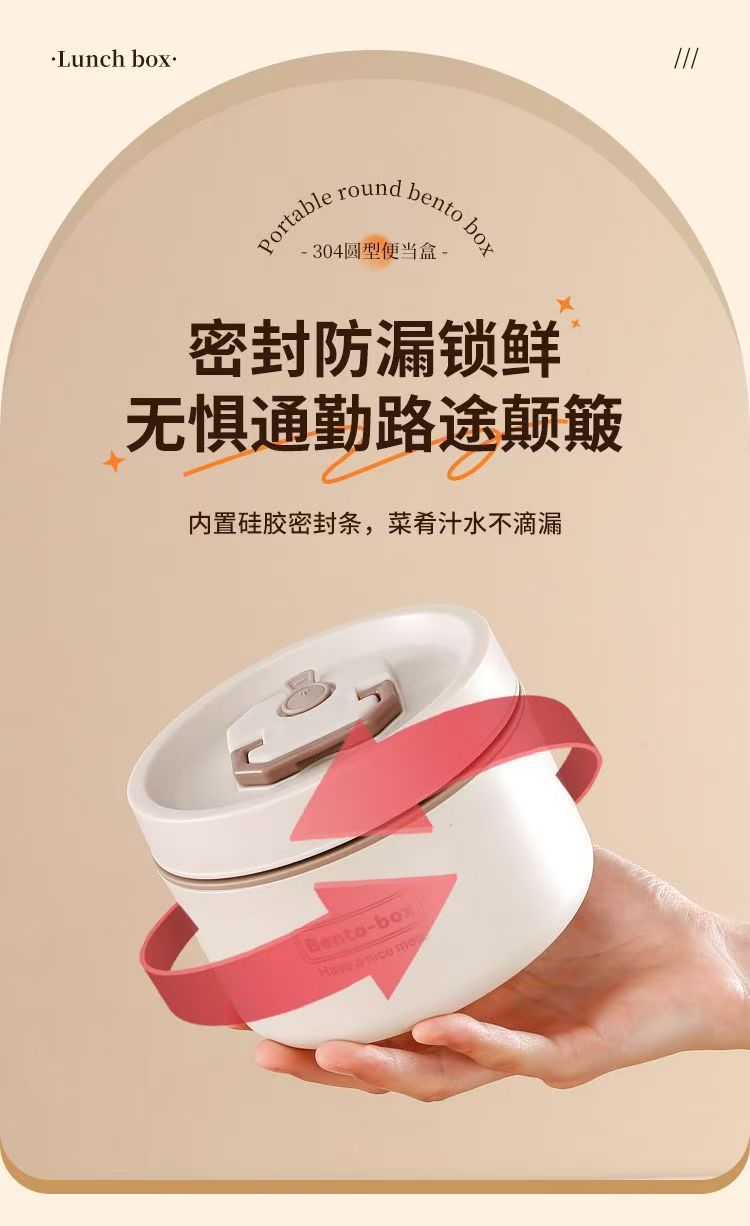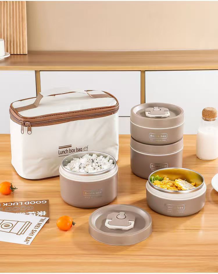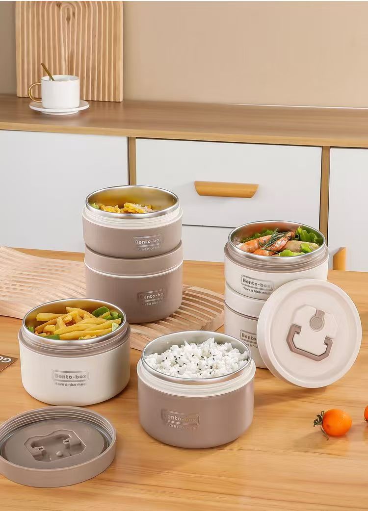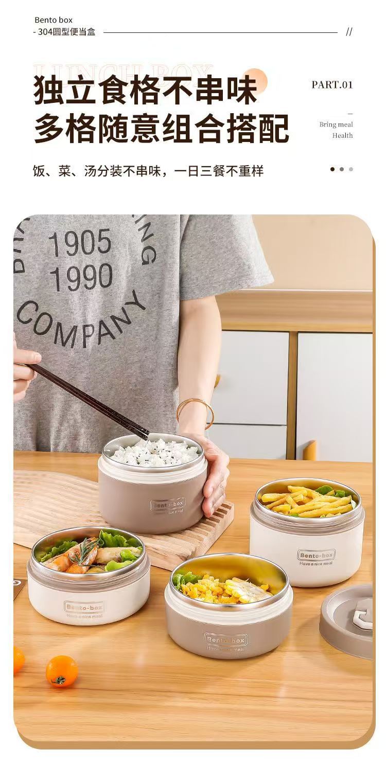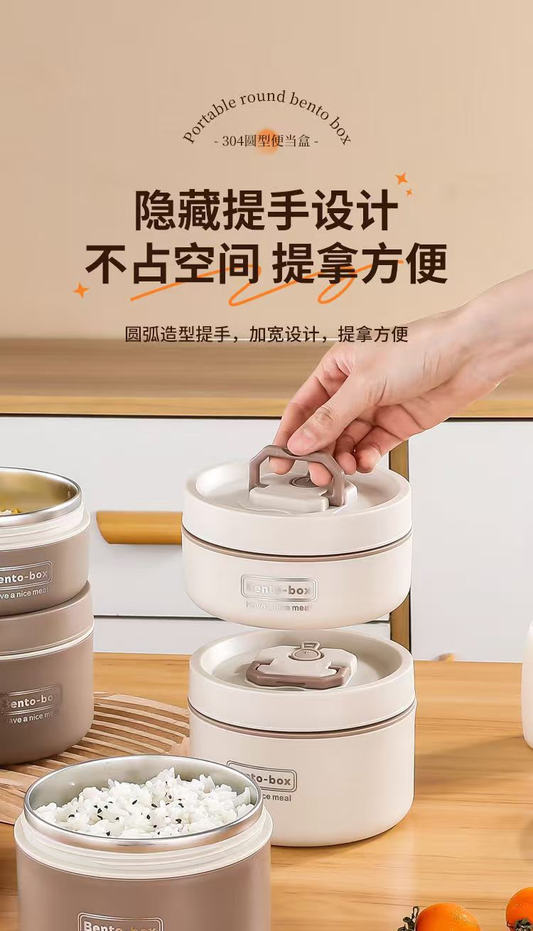 Caja de almuerzo de aislamiento de acero inoxidable, alumno redondo, cubo de almuerzo, bolsa de aislamiento, caja de almuerzo multicapa, caja de almuerzo portátil de aislamiento
