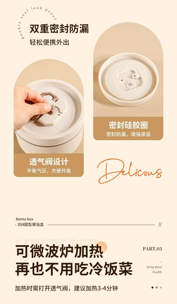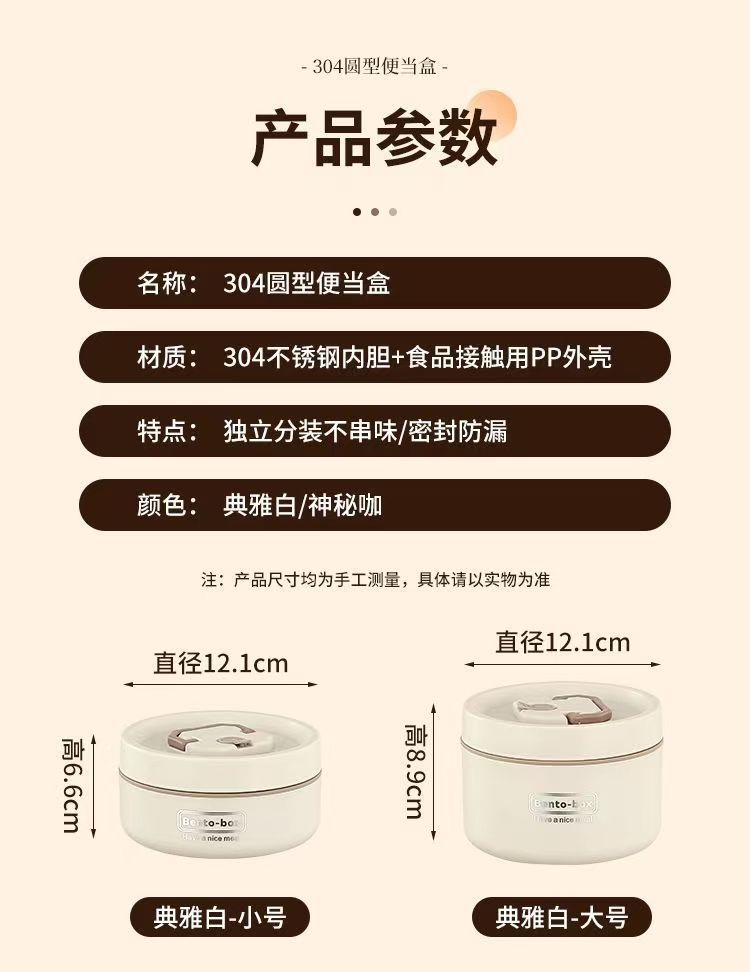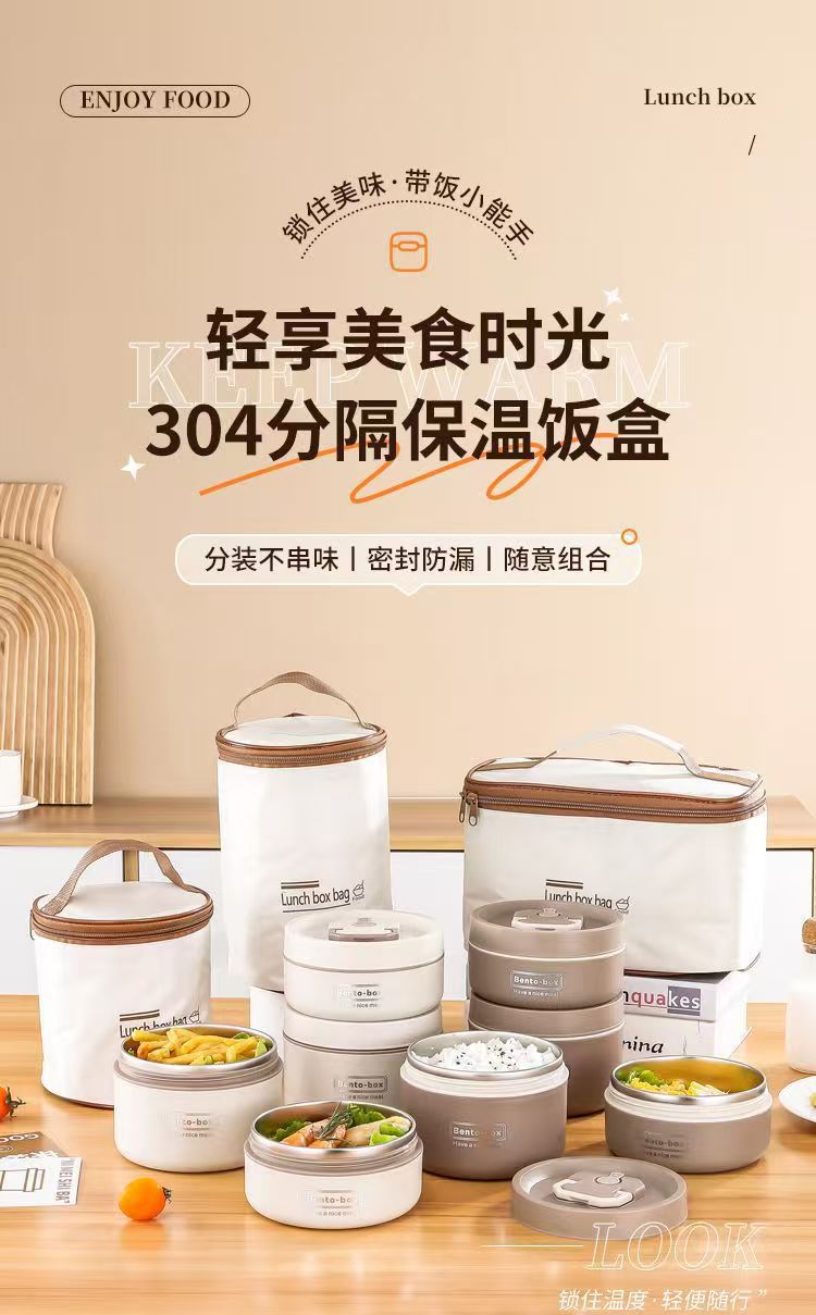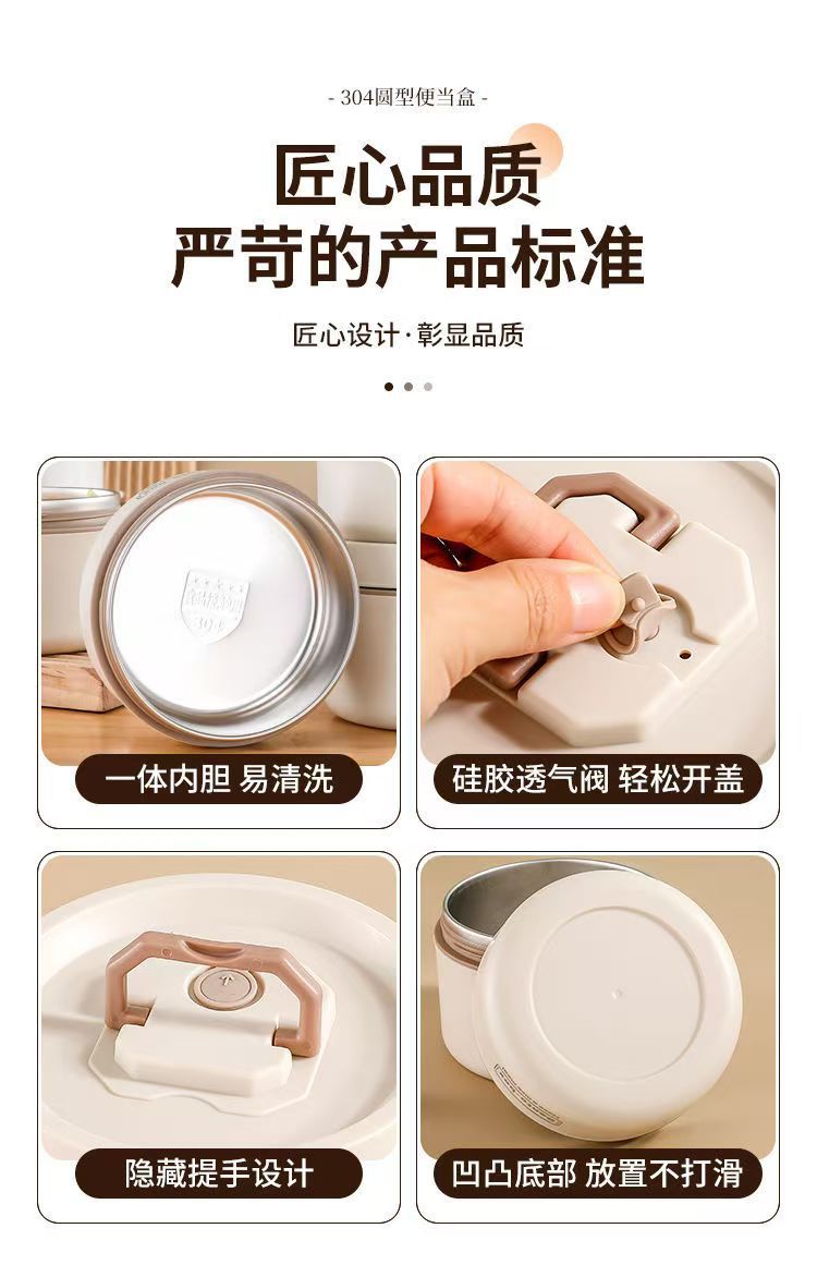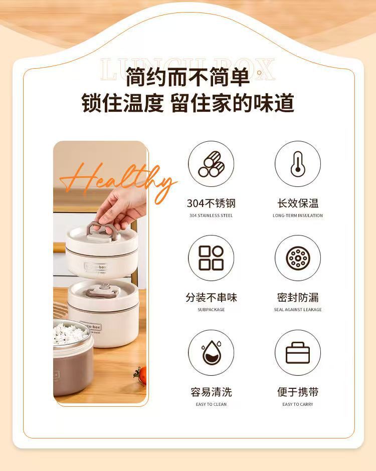 Caja de almuerzo de aislamiento de acero inoxidable, alumno redondo, cubo de almuerzo, bolsa de aislamiento, caja de almuerzo multicapa, caja de almuerzo portátil de aislamiento