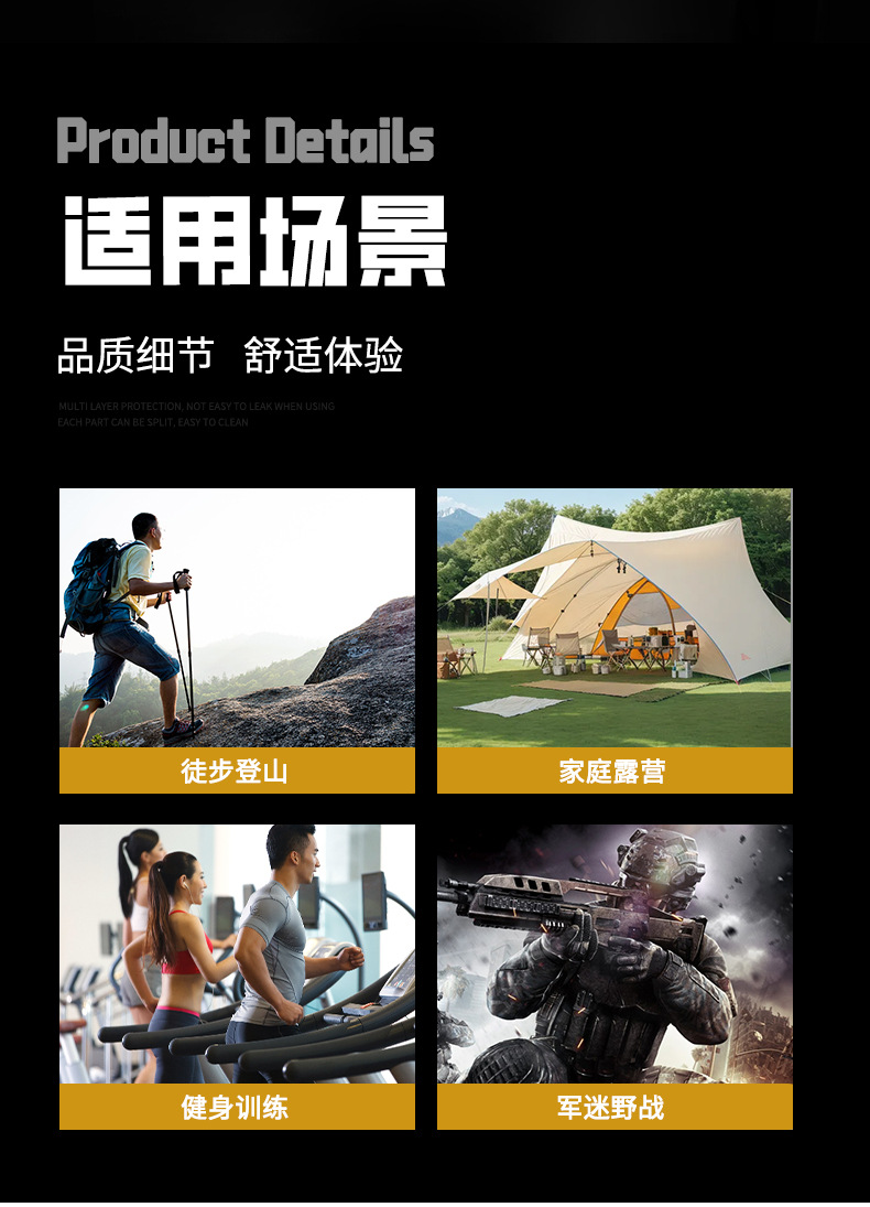 | Campaña aplicable | Fútbol, tenis, yoga, montañismo, camping, ciclismo, Golf |