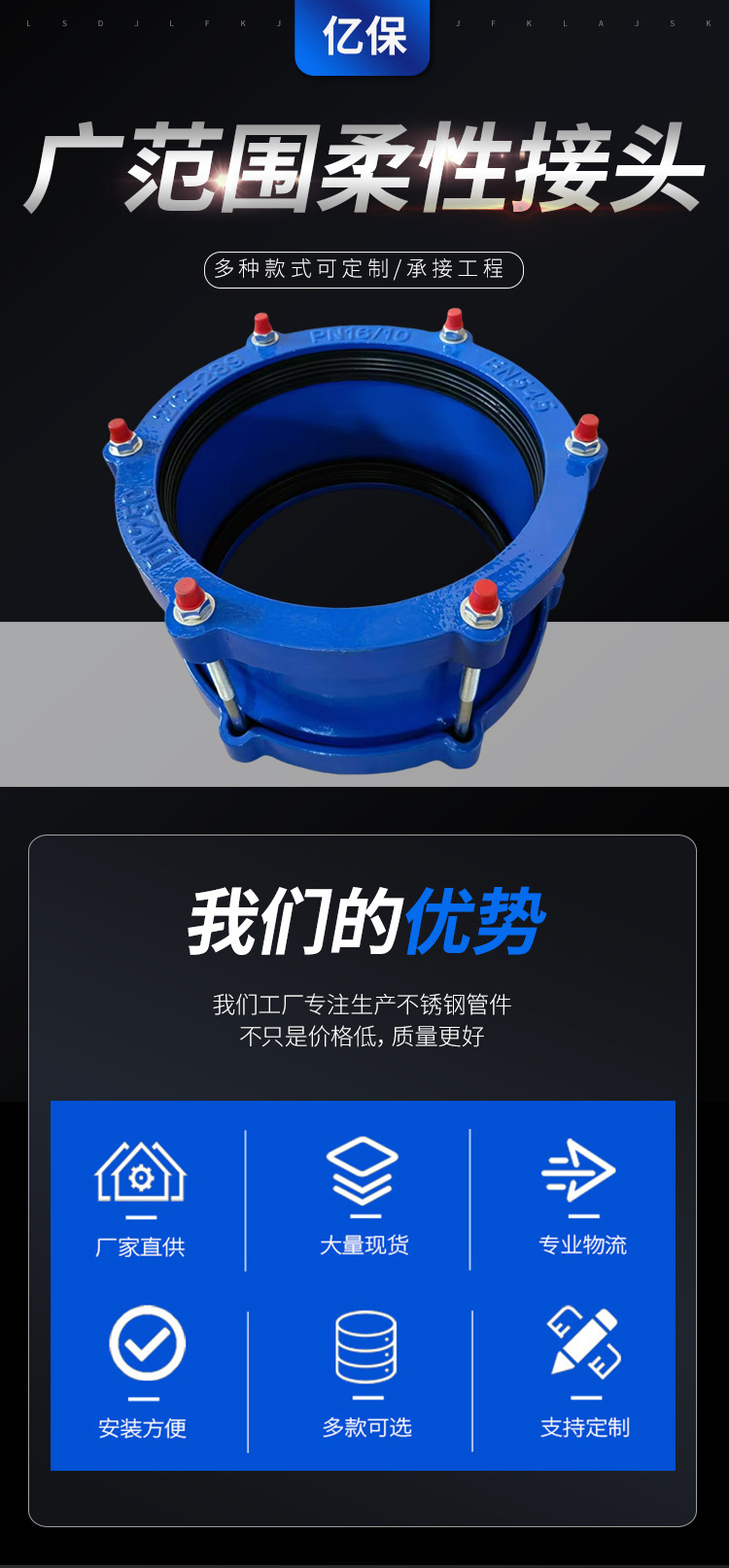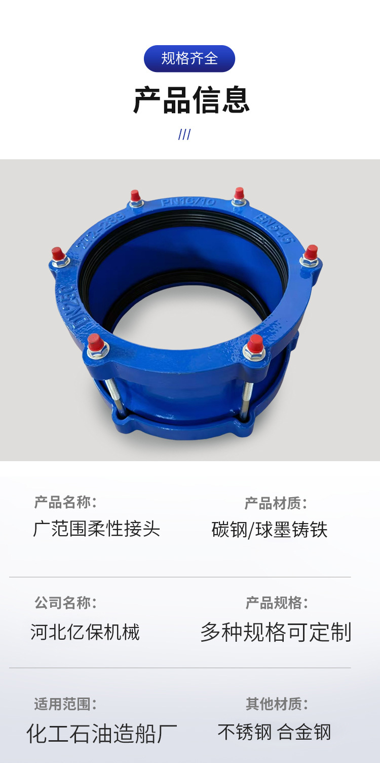 Acoplamiento flexible de amplia gama conector rápido de tubería de compensación flexible acoplamiento telescópico abrazadera de tubo personalizada