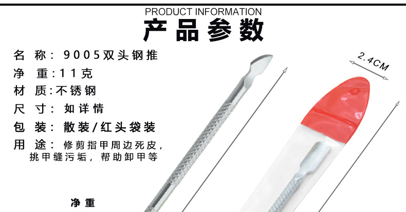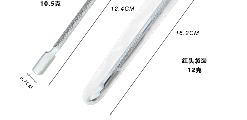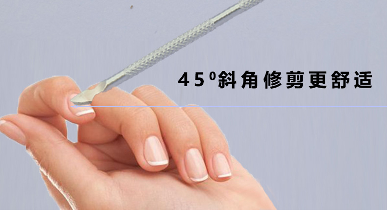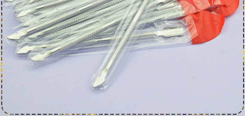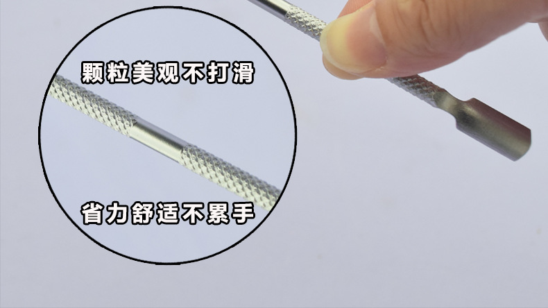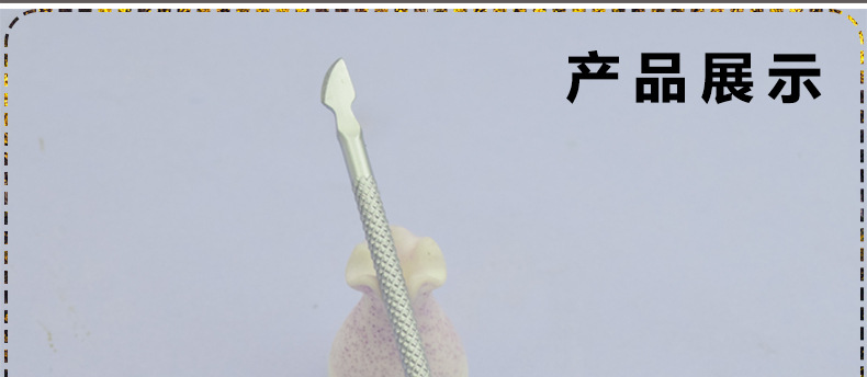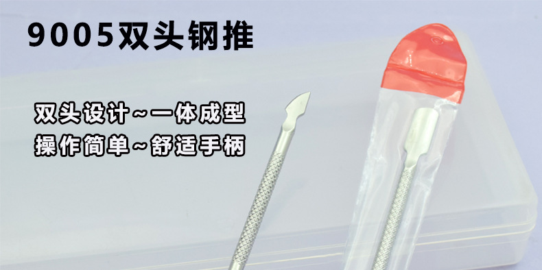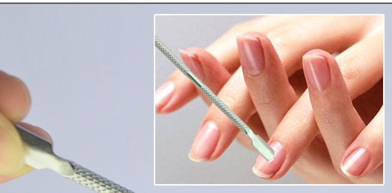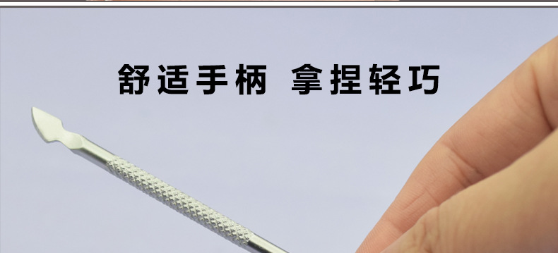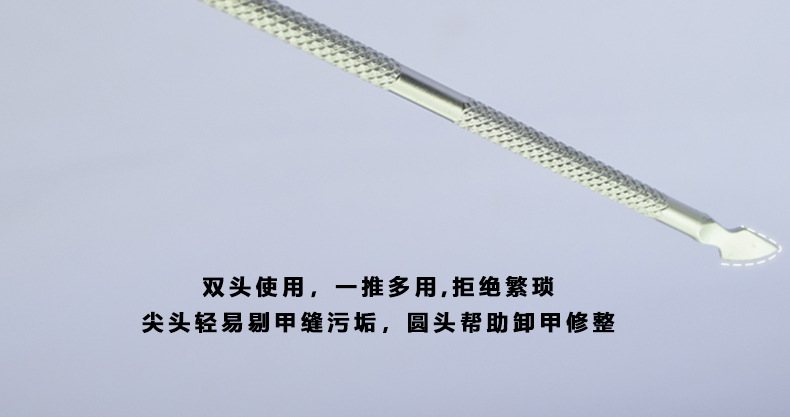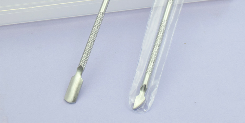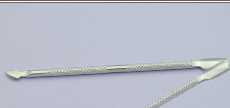 Fabricante spot acero de doble cabezal de acero inoxidable empujado para quitar la armadura, exfoliación, exfoliación, manicura de piel muerta, borde de la herramienta de manicura