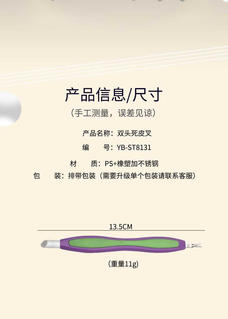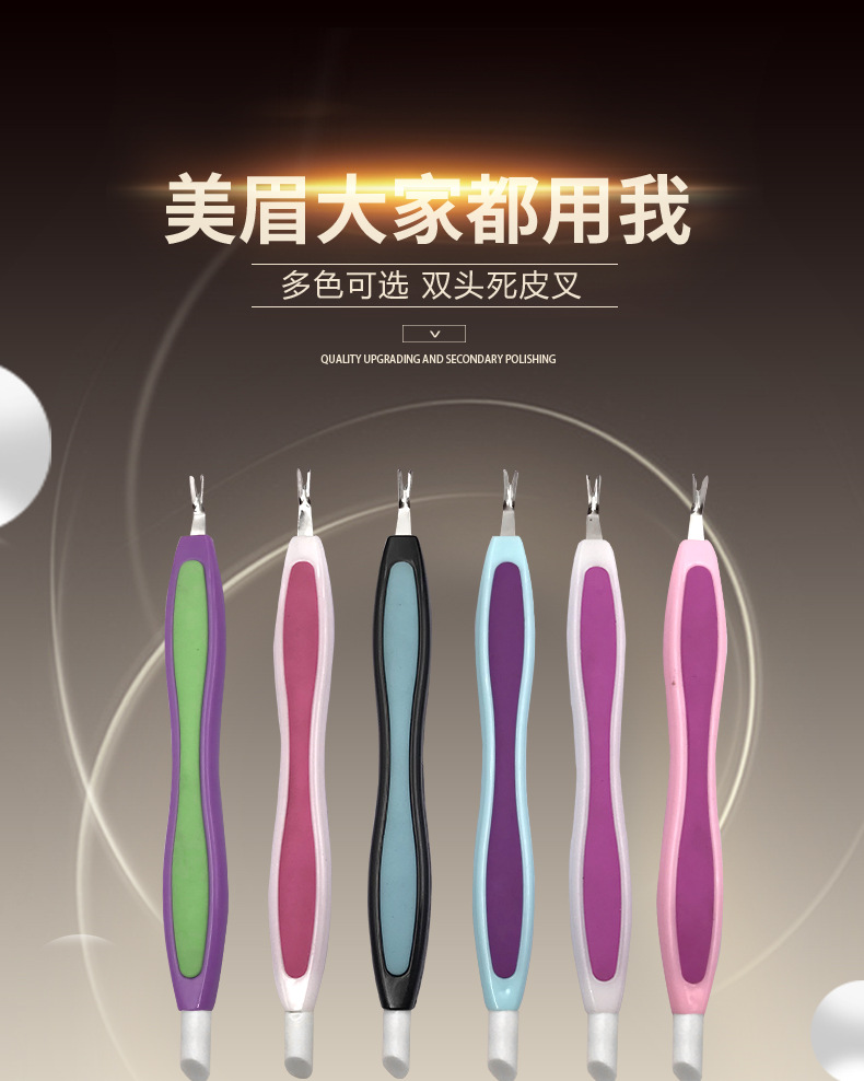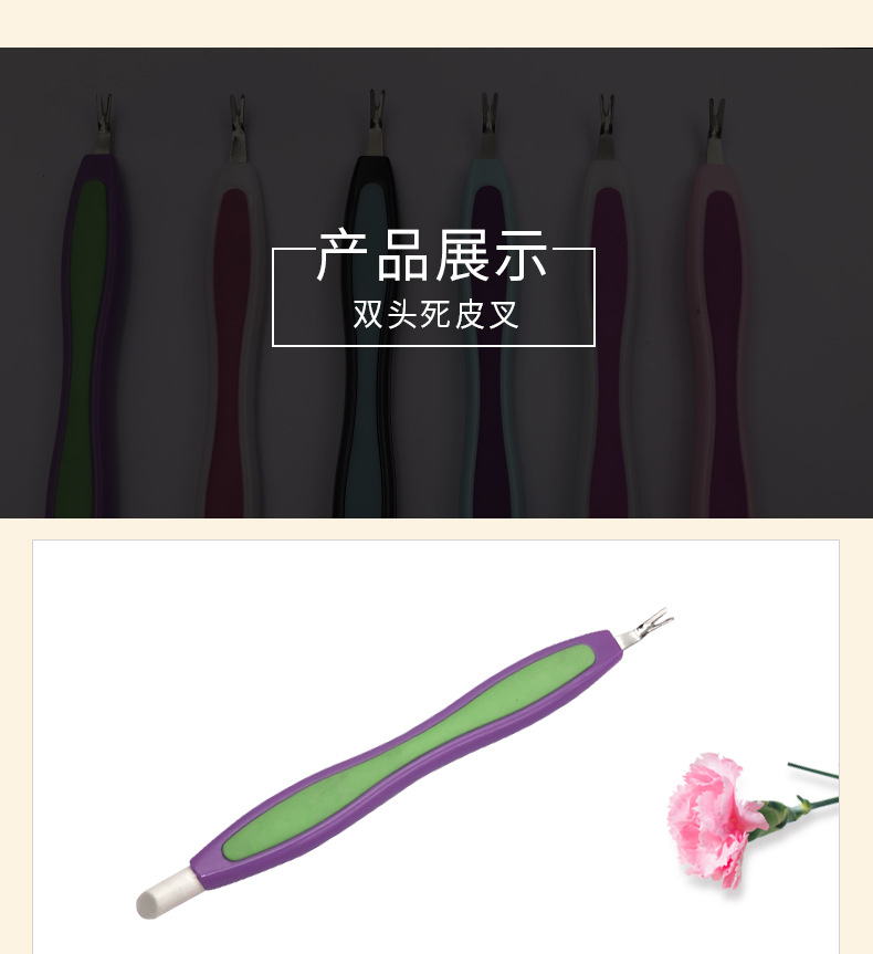 Fabricante al por mayor spot multicolor horquilla de caucho y plástico mango de plástico tenedor de piel muerta empuja tenedor de piel muerta de doble cabeza
