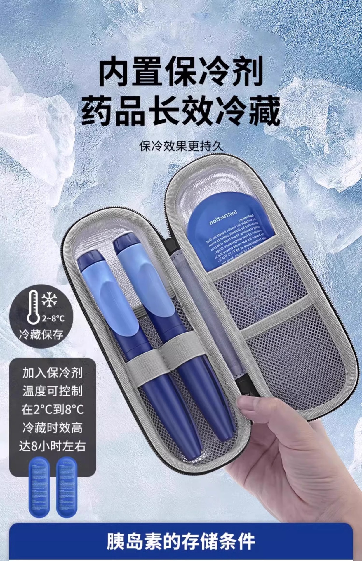 Caja de refrigeración de insulina EVA mini medicamento portátil con paquete de aislamiento térmico bolsa de hielo caja de almacenamiento de medicamentos