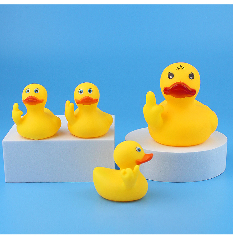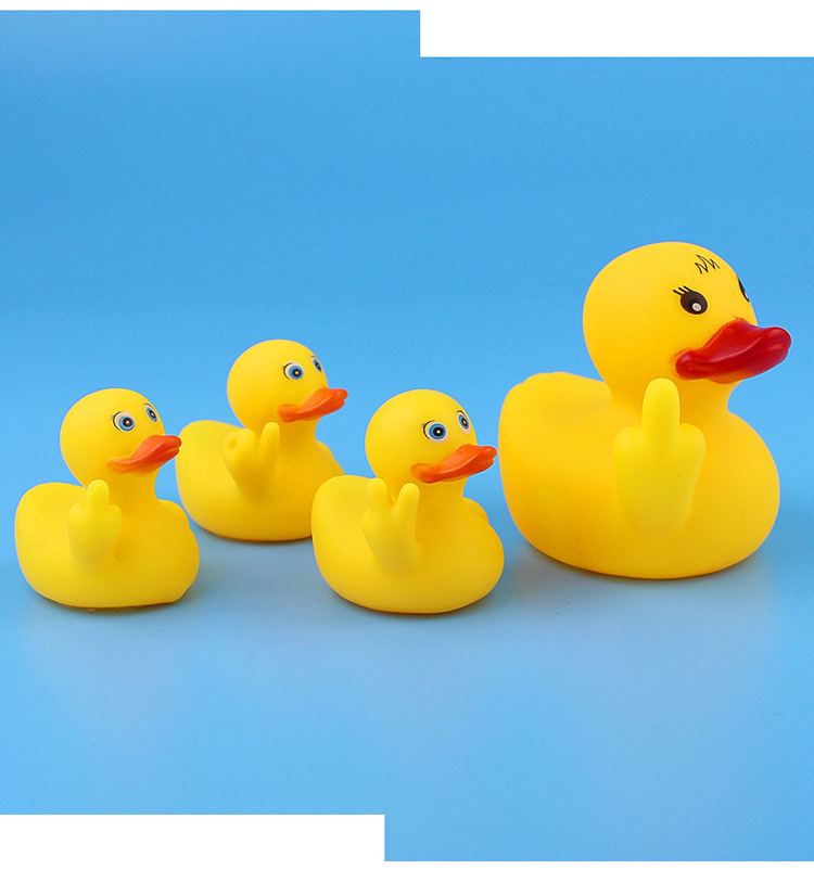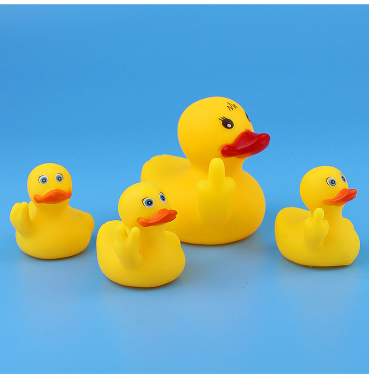 One big duck with three little gestures despises funny toys
