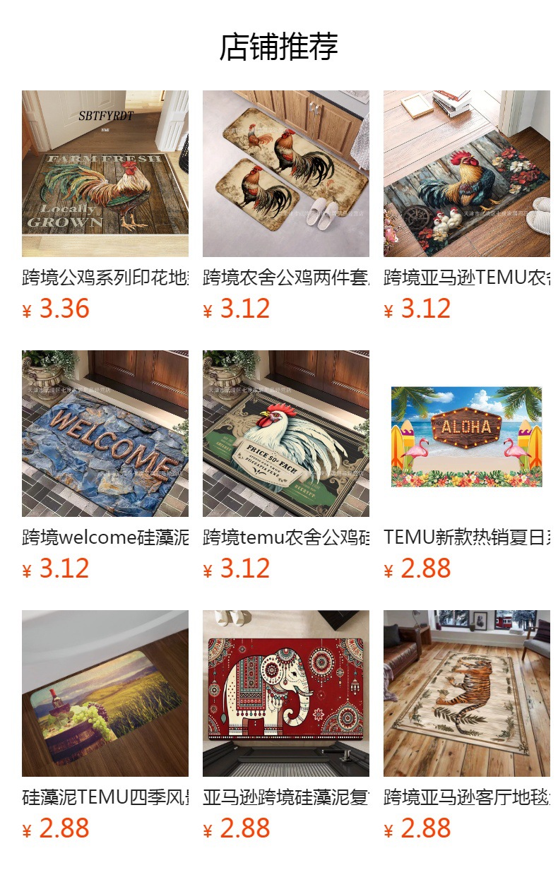 Mud de diatomeas Amazon emitió una alfombra de piso de gallo grande estadounidense transfronteriza, alfombrilla de entrada para puerta, alfombrilla de cocina resistente a las manchas