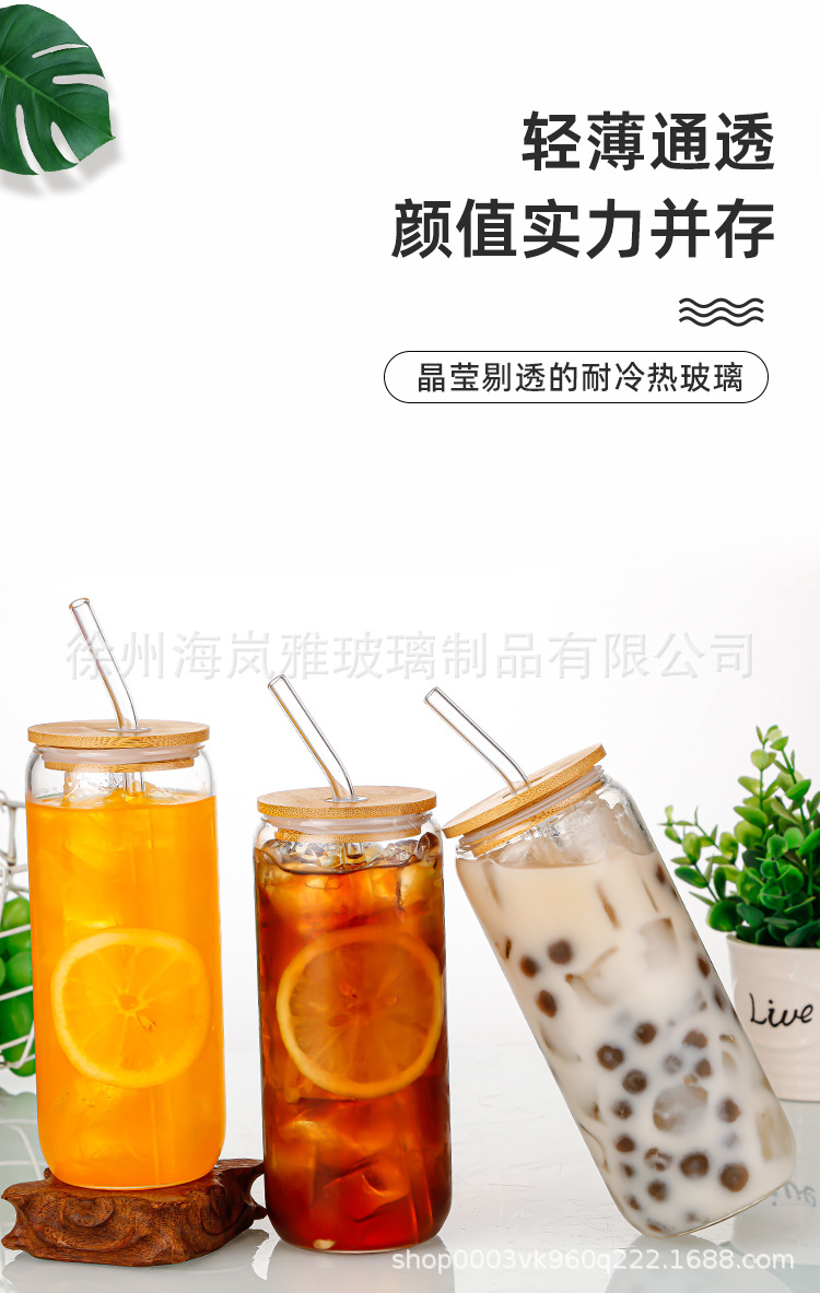 | Cross - Border coca Cup Mason Cup | Amazon 16oz Glass Mason Cup Coffee Cup Glass Water Cup resistente a altas temperaturas con tapa de pajita coca Cup |