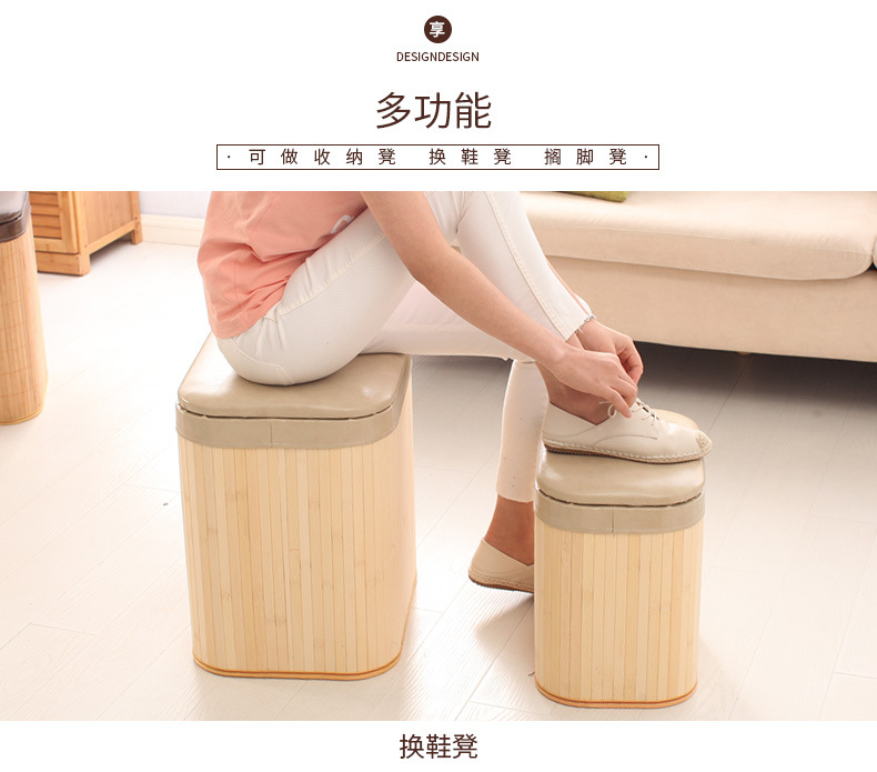 Taburete de bambú, taburete de almacenamiento, taburete de almacenamiento, taburete pequeño, taburete de cambio de zapatos, taburete de cambio de zapatos, taburete bajo, caja de almacenamiento de juguetes