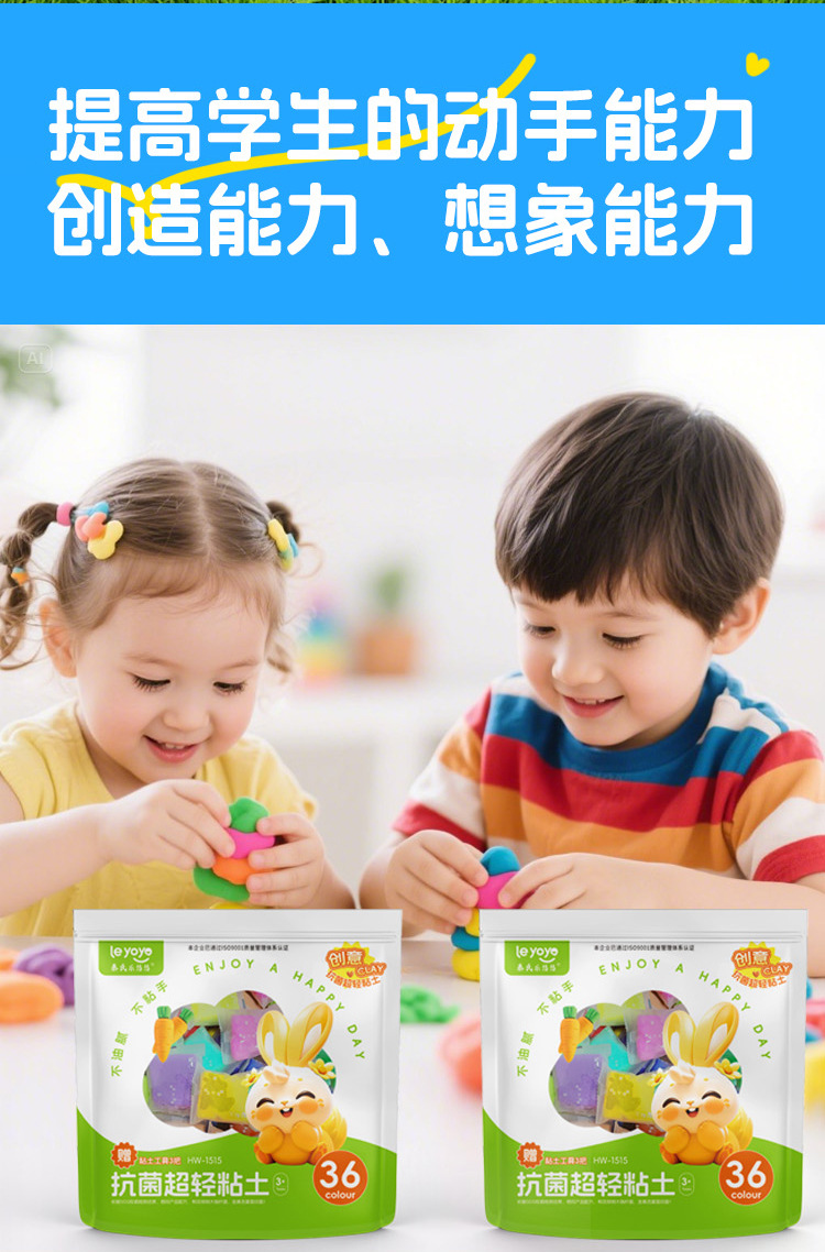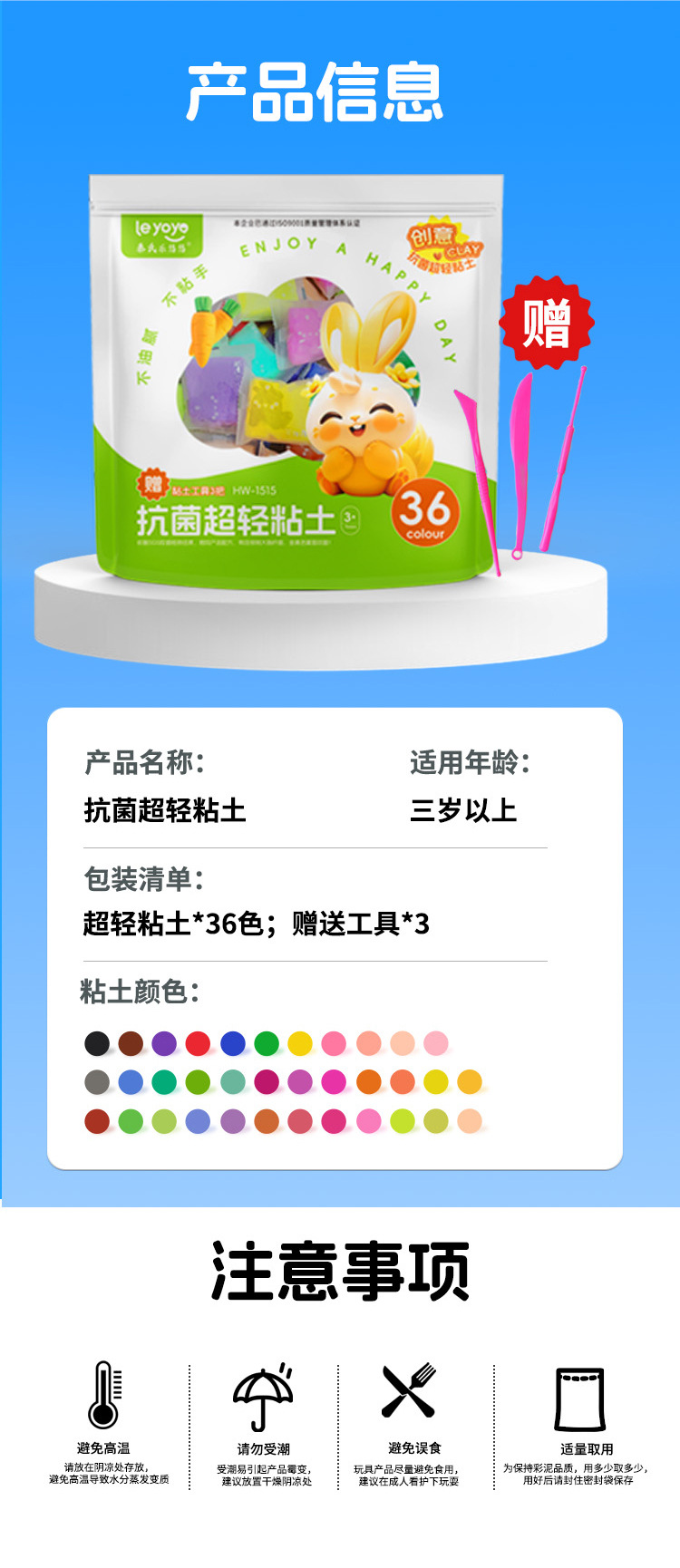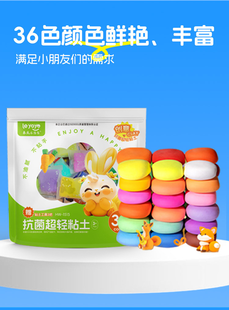 | Especificaciones | Leyouyou arcilla ultraligera 36 colores + herramientas pequeñas (bolsas autosuficientes) |