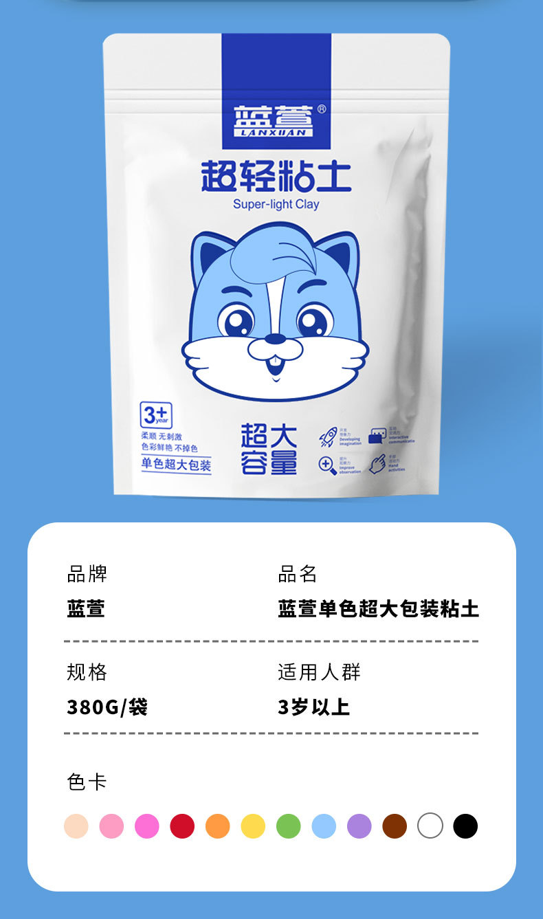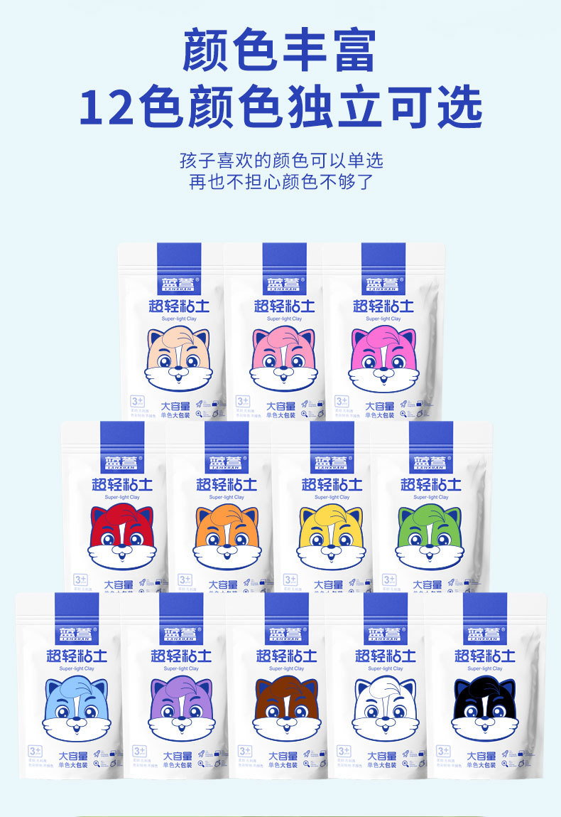 Arcilla ultraligera 36 colores 380g bolsa grande de barro de colores jardín de infantes arcilla espacial hecha a mano juguetes de plastilina arcilla transfronteriza