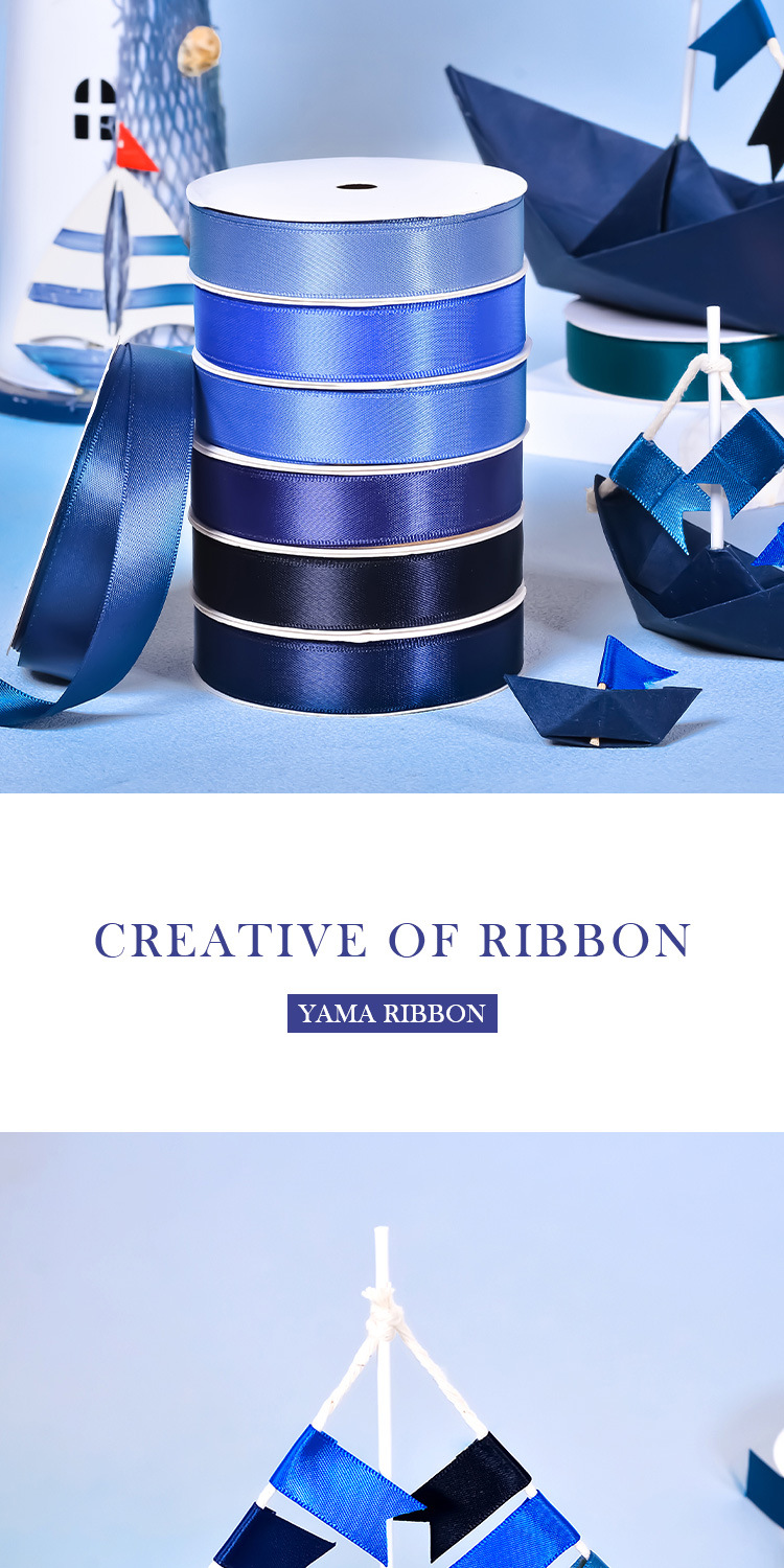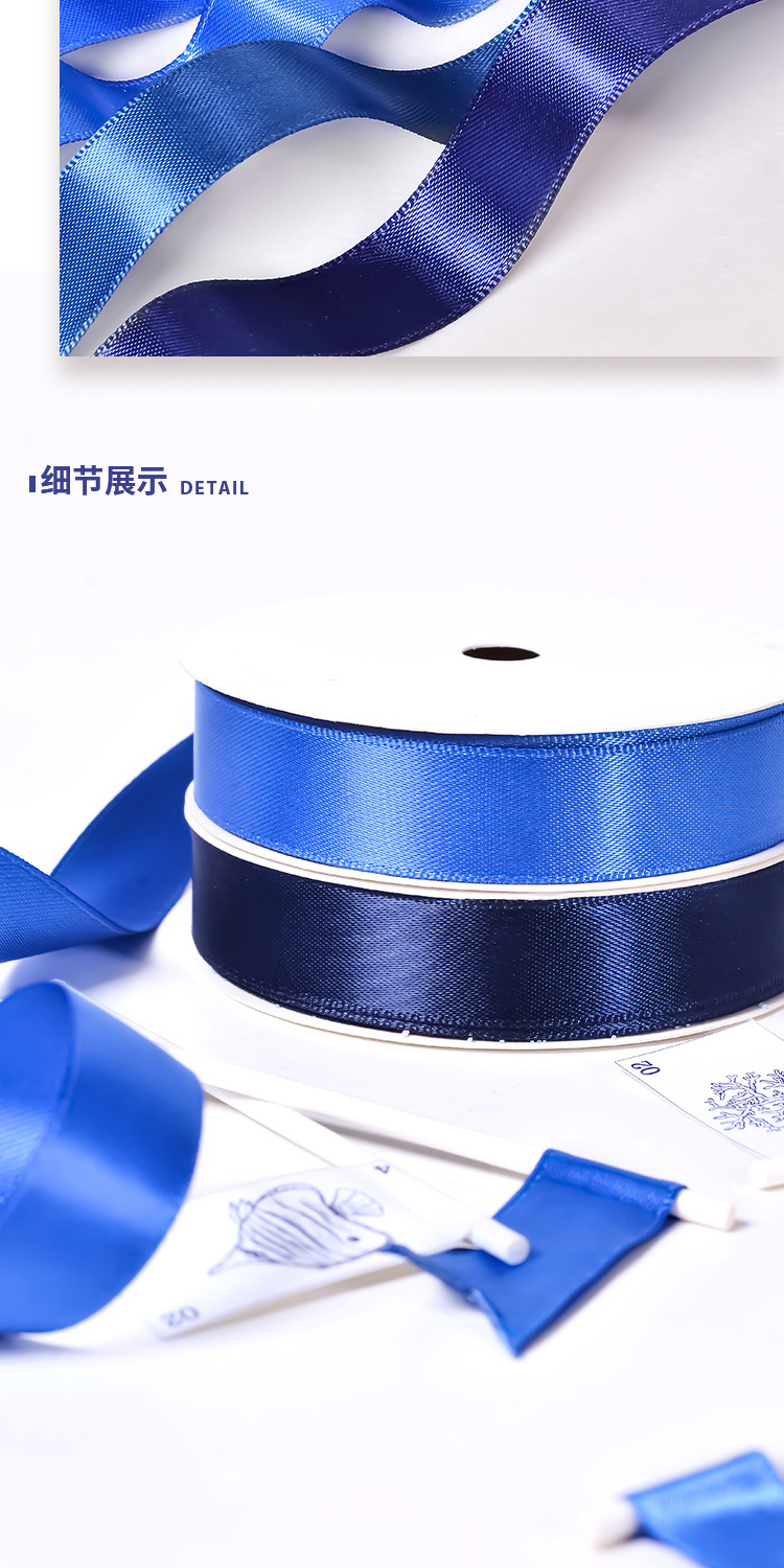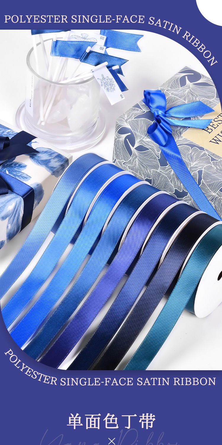 Cinta de regalo de gran venta de Yao Ming, cinta de embalaje de lazo de 16 mm, correa azul oscuro, cinta de satén lisa individual.