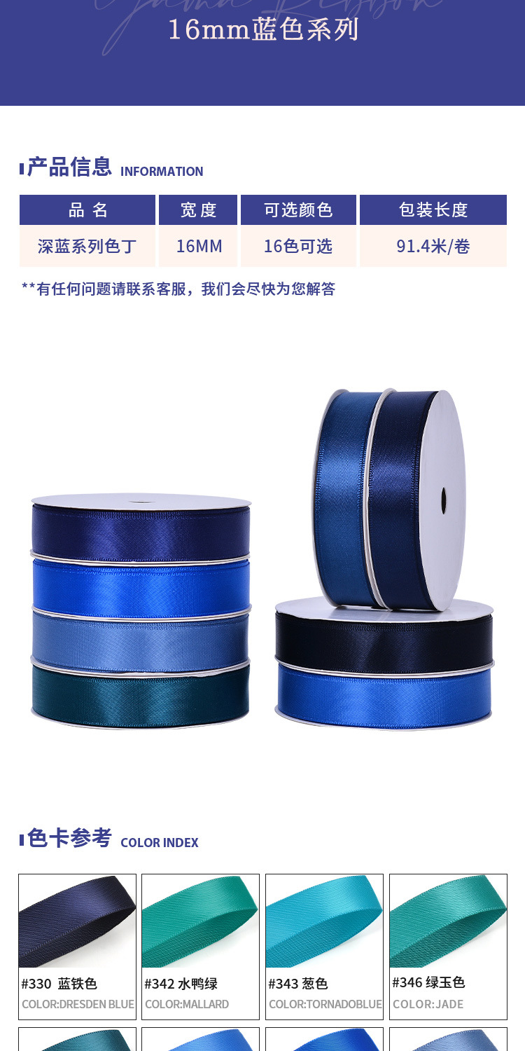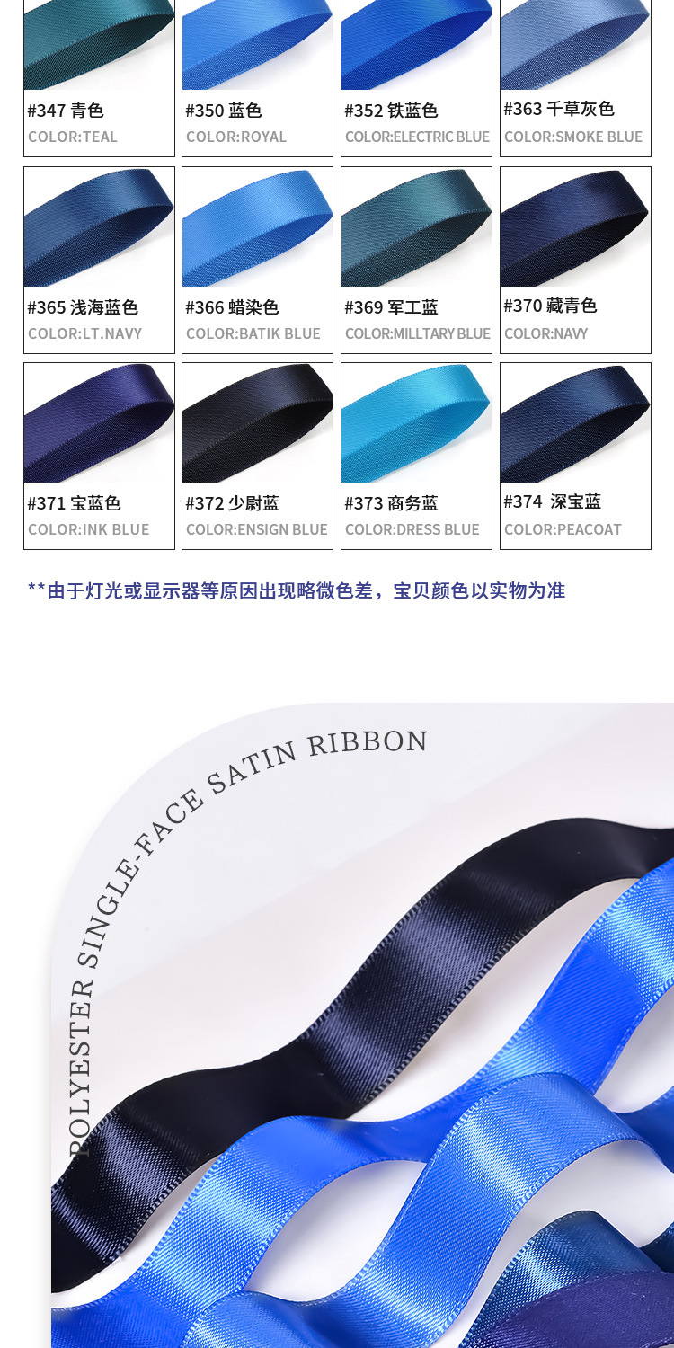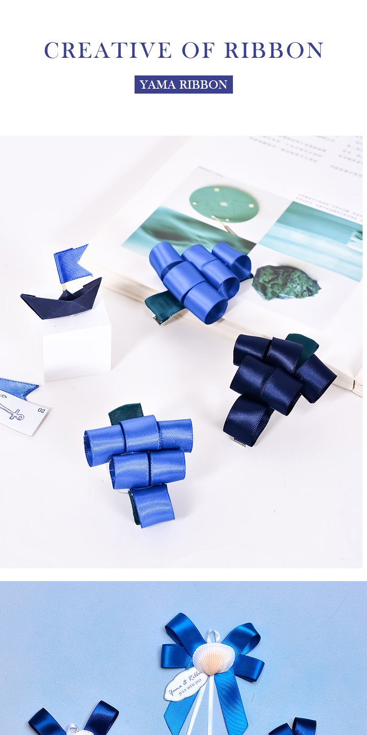Cinta de regalo de gran venta de Yao Ming, cinta de embalaje de lazo de 16 mm, correa azul oscuro, cinta de satén lisa individual.