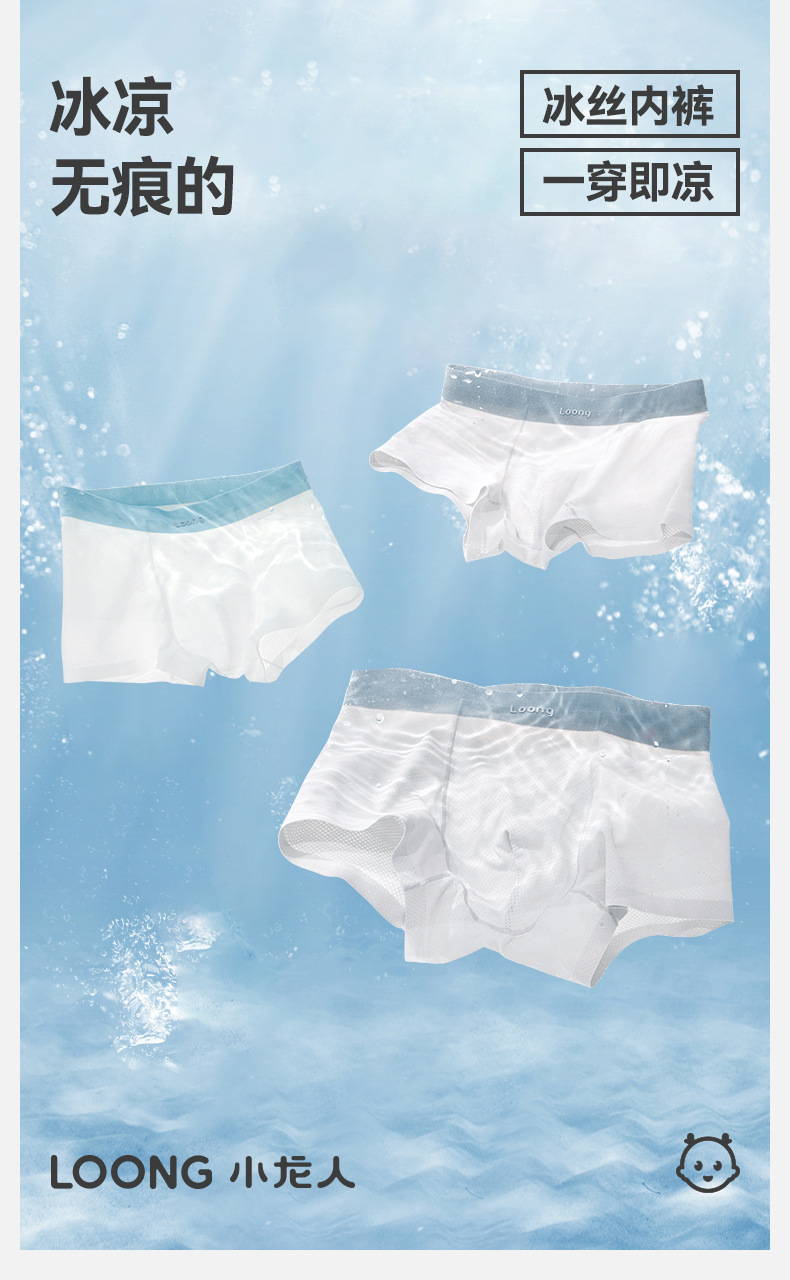Xiaolongren ropa interior para niños pantalones cortos bóxer de seda de hielo para niños delgados de verano