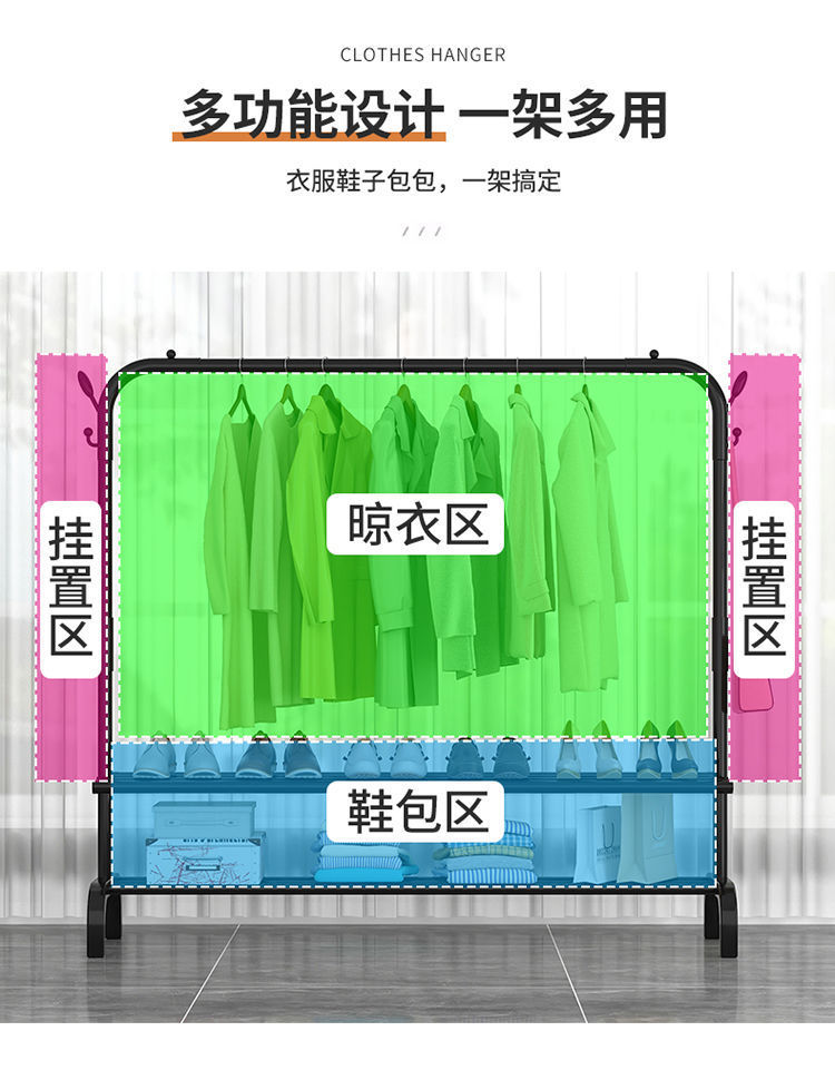 Tendedero, perchero de piso, vertical con rodillos, engrosamiento, perchero de ropa interior para el hogar, perchero de hierro para ropa