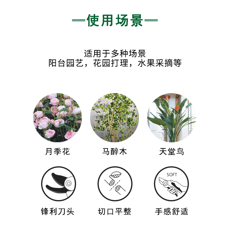 | Escenarios aplicables | Poda de jardín, poda de macetas. |