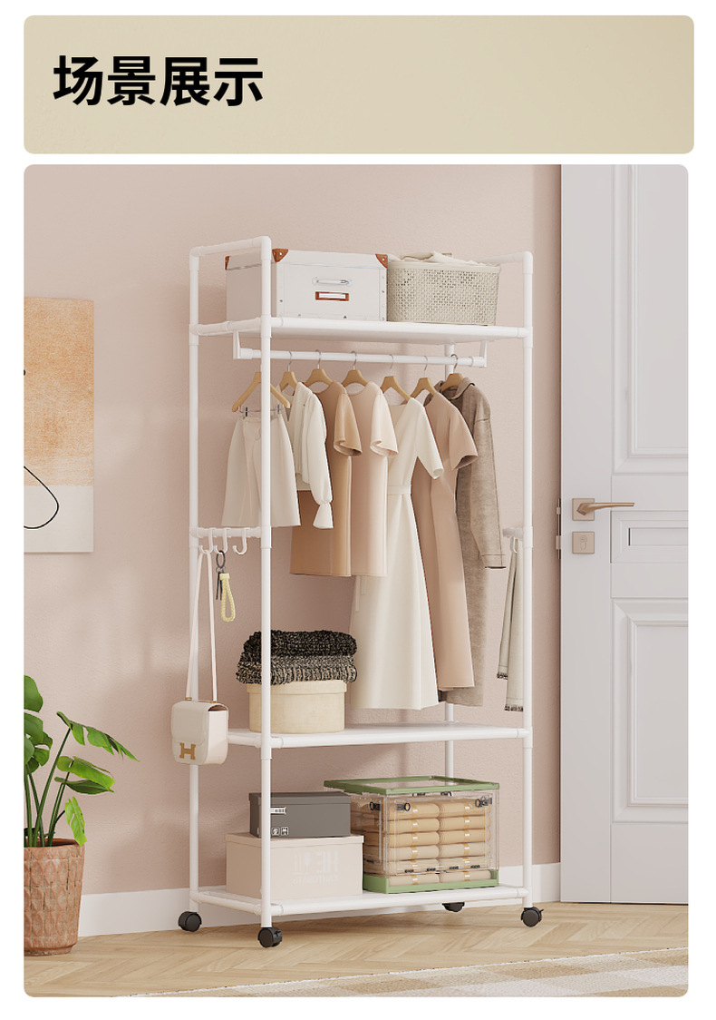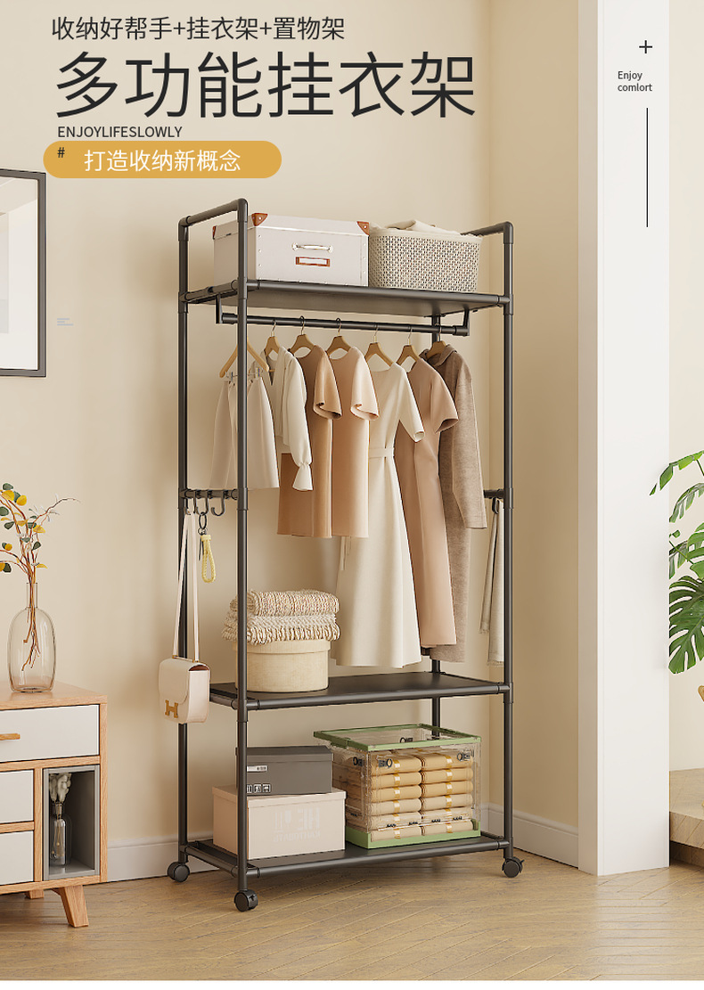 Perchero sencillo, de pie, multifuncional para uso doméstico en el dormitorio, estante de almacenamiento interior de varias capas para dormitorios de estudiantes.