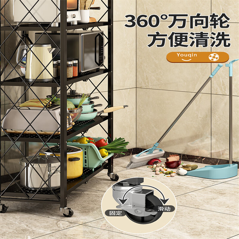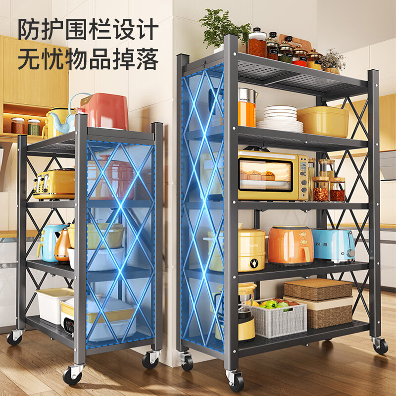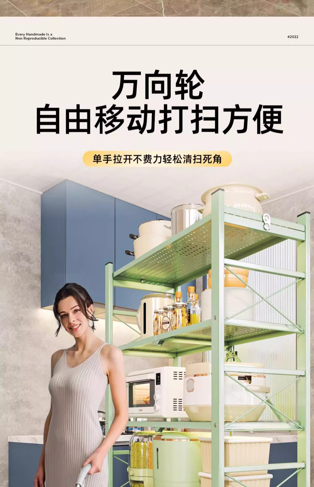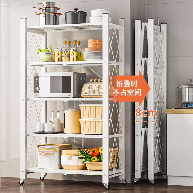 Estante de almacenamiento plegable sin instalación de piso de cocina multicapa de microondas estante de almacenamiento de bocadillos de hendidura móvil