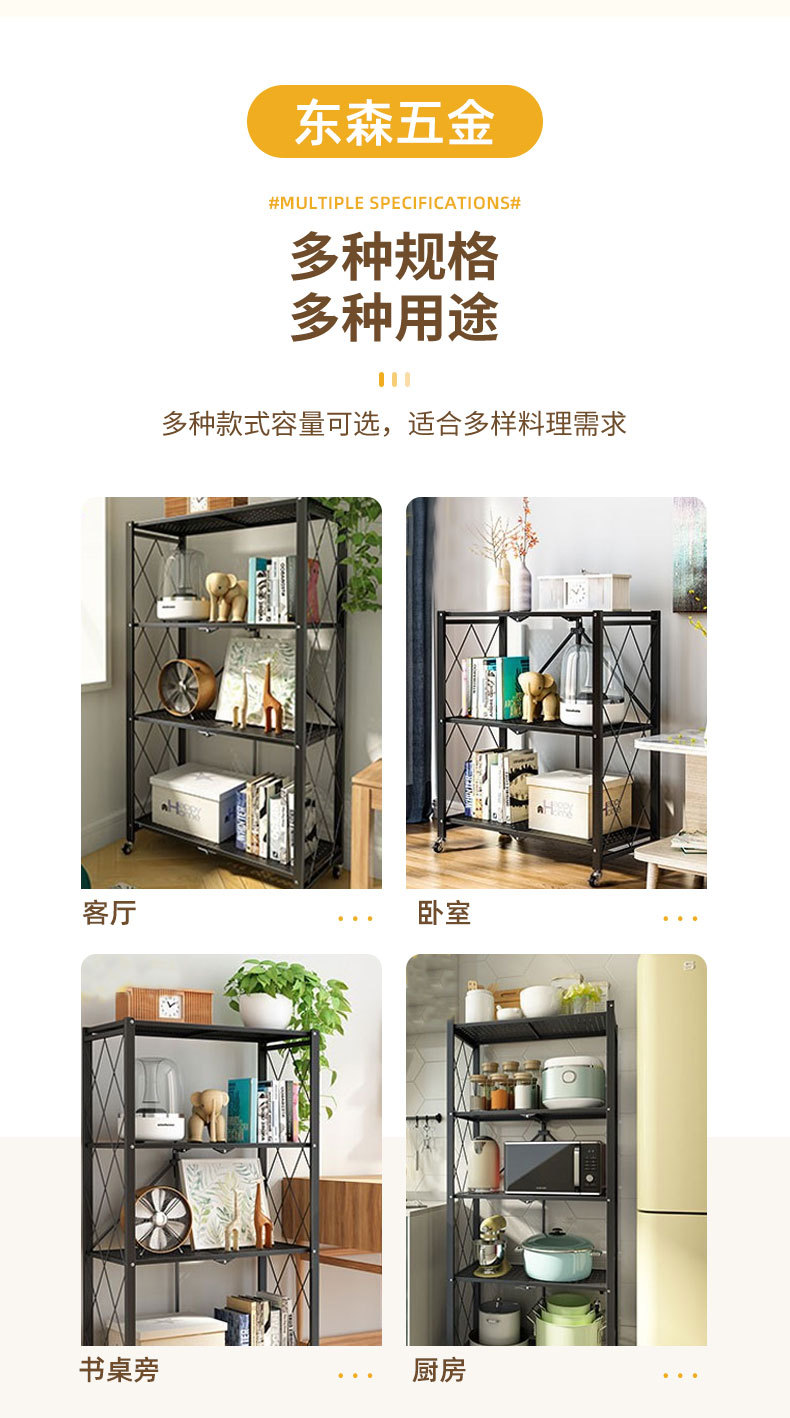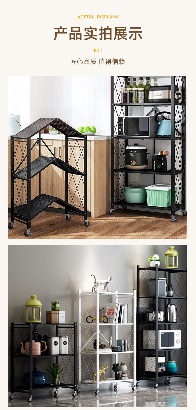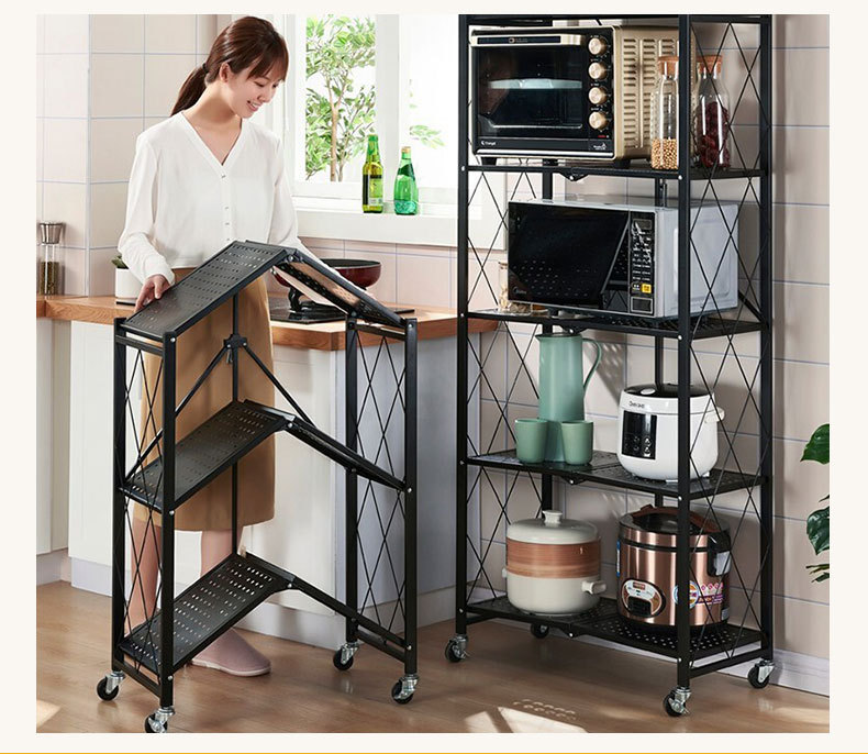 Estante de almacenamiento de piso para sala de estar doméstica Estante de almacenamiento plegable de acero al carbono multicapa de cocina Estante de almacenamiento multifuncional de dispositivo libre de seguridad