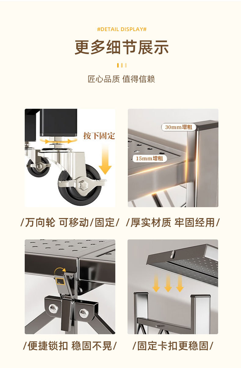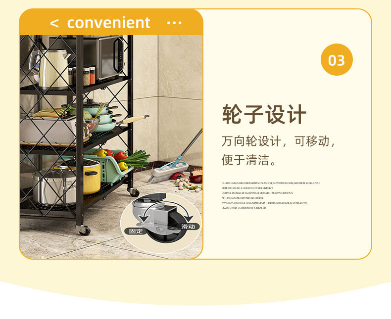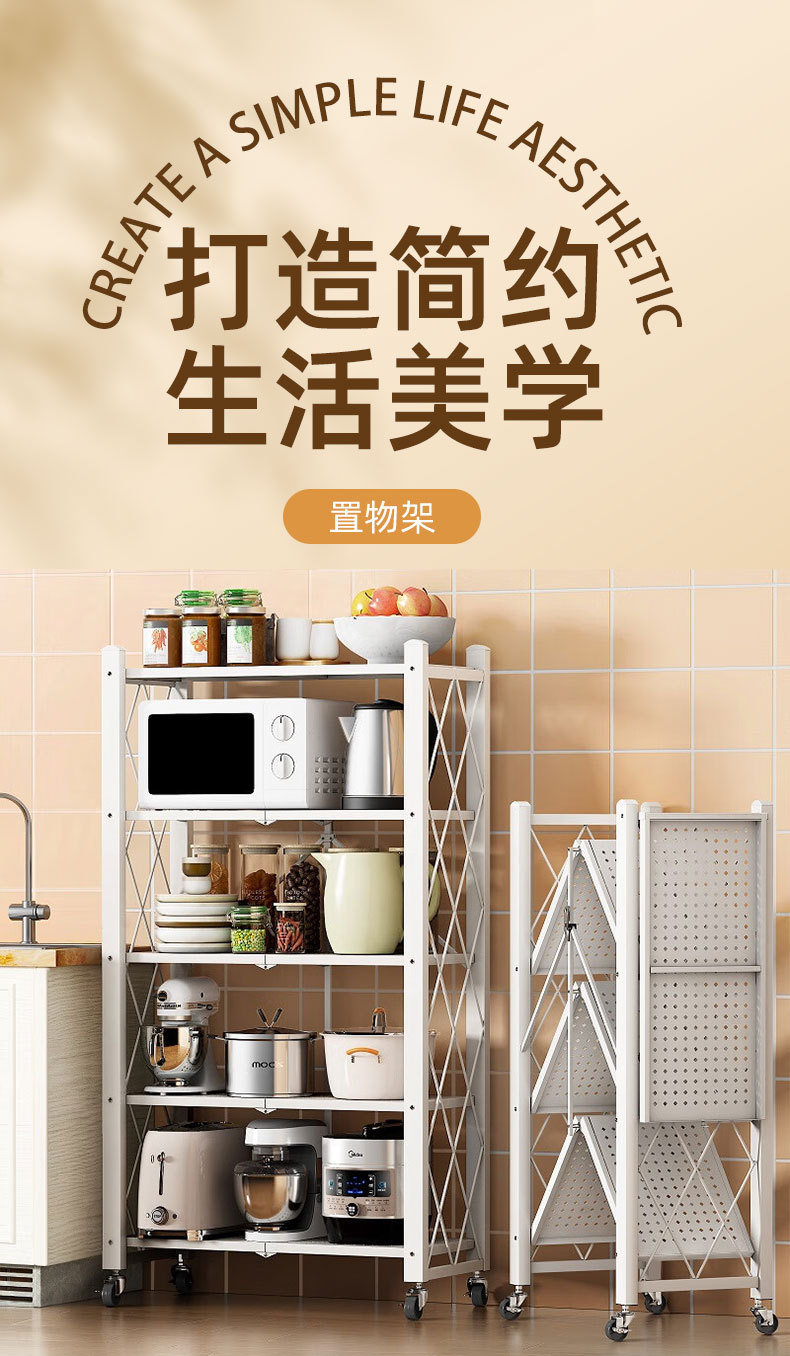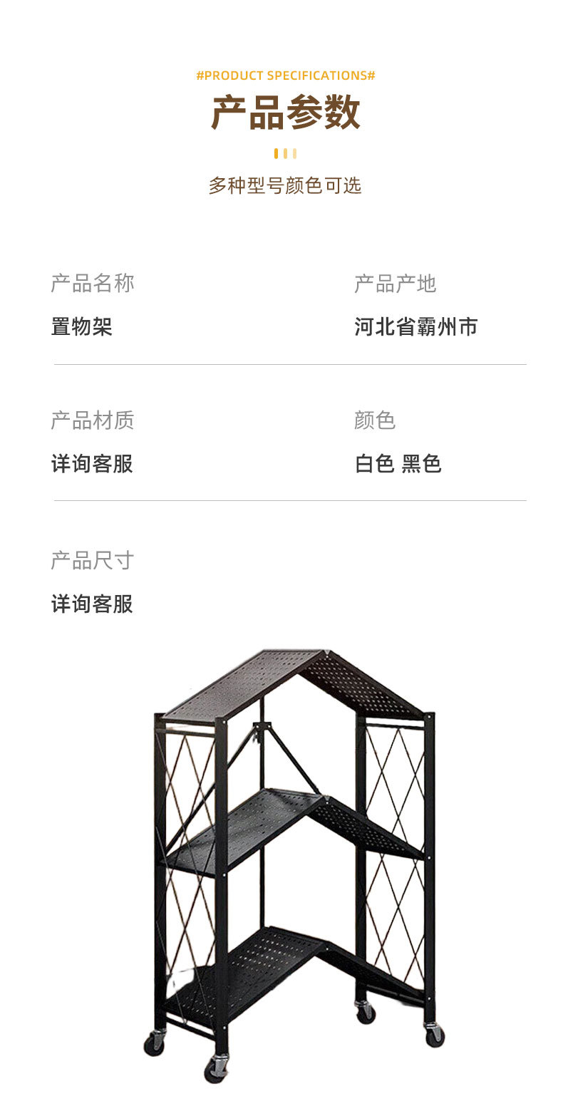 Estante de almacenamiento de piso para sala de estar doméstica Estante de almacenamiento plegable de acero al carbono multicapa de cocina Estante de almacenamiento multifuncional de dispositivo libre de seguridad