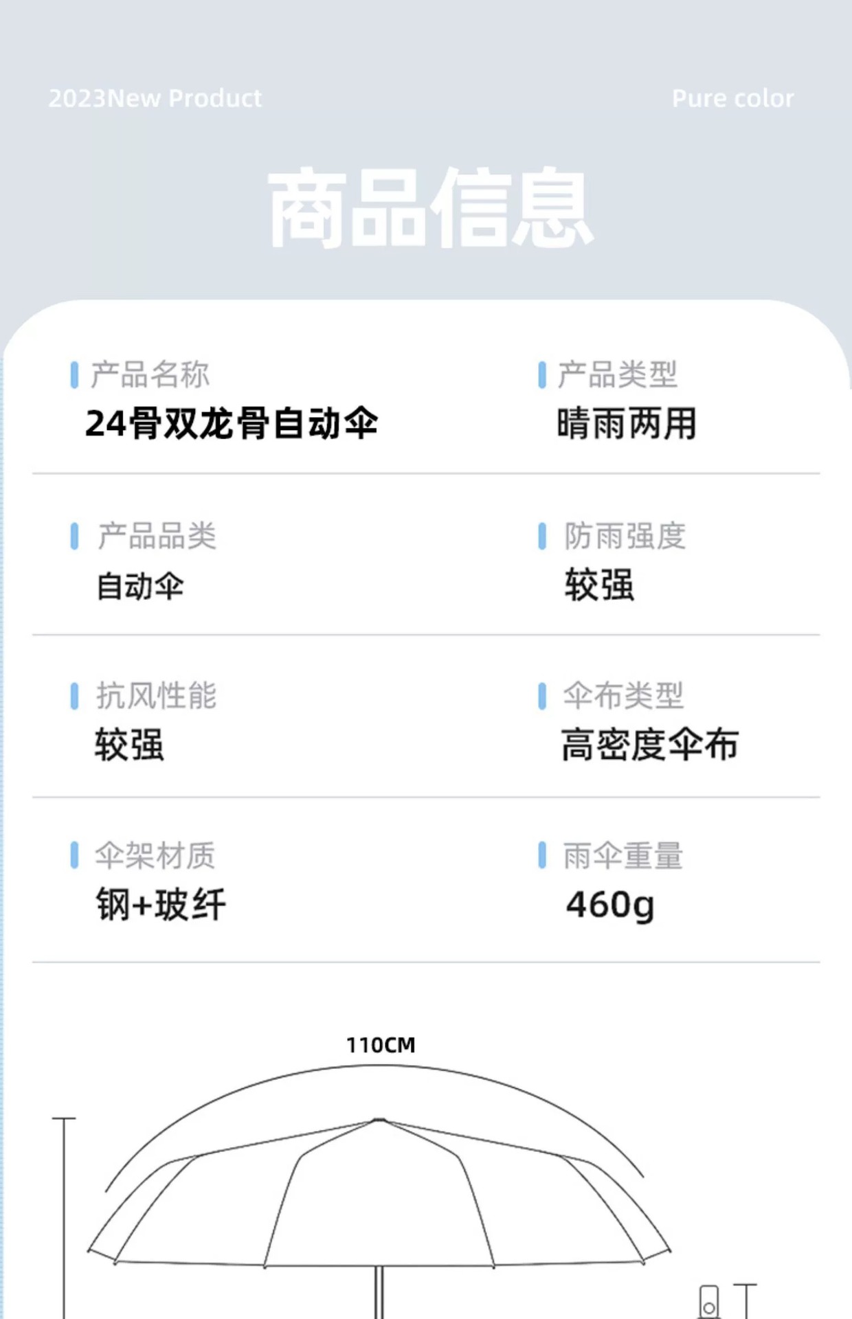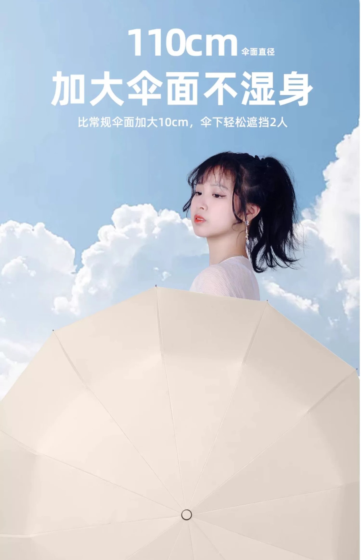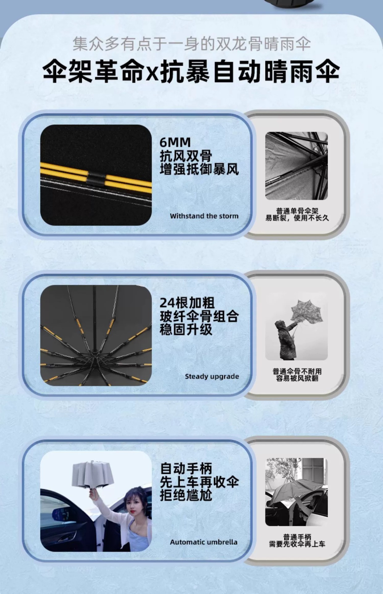 Azul cielo [Paraguas resistente al viento de fibra de vidrio de 24 varillas - Adecuado para días soleados y lluviosos]