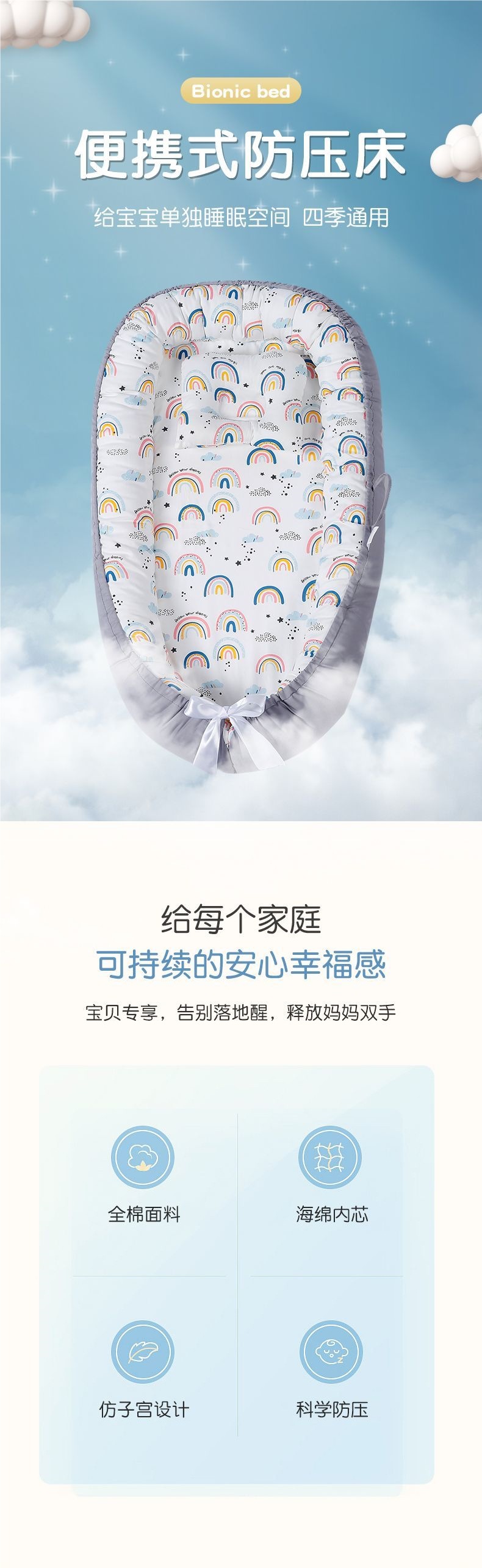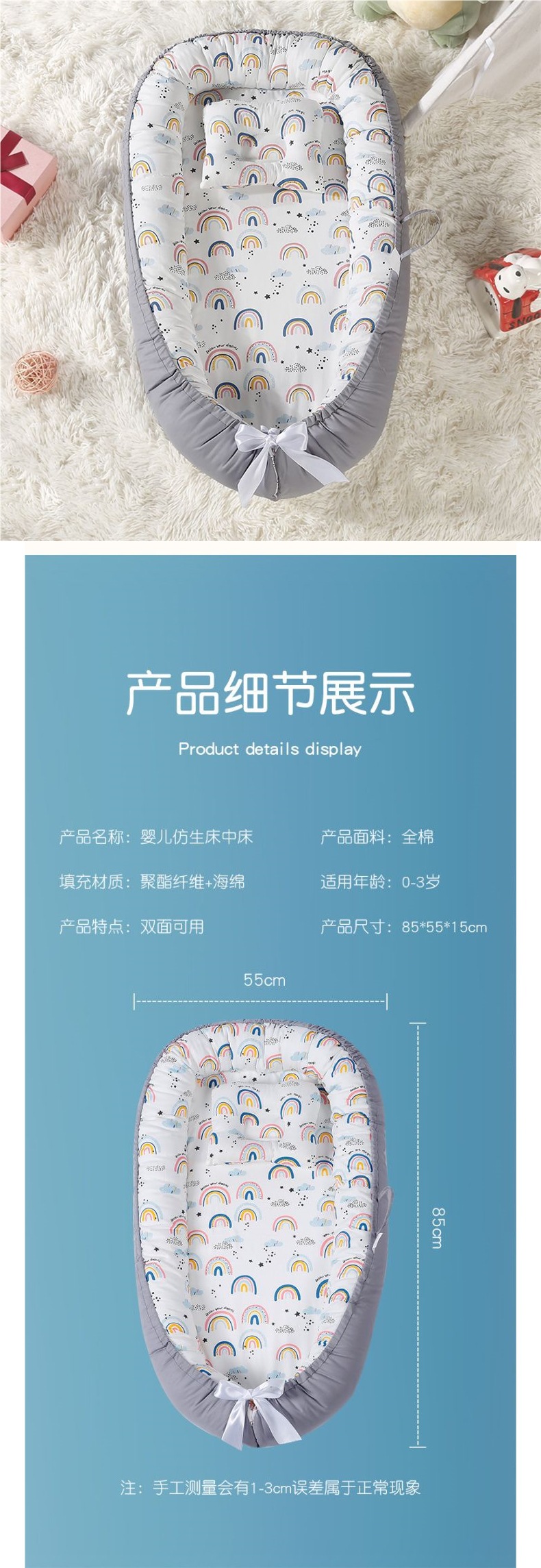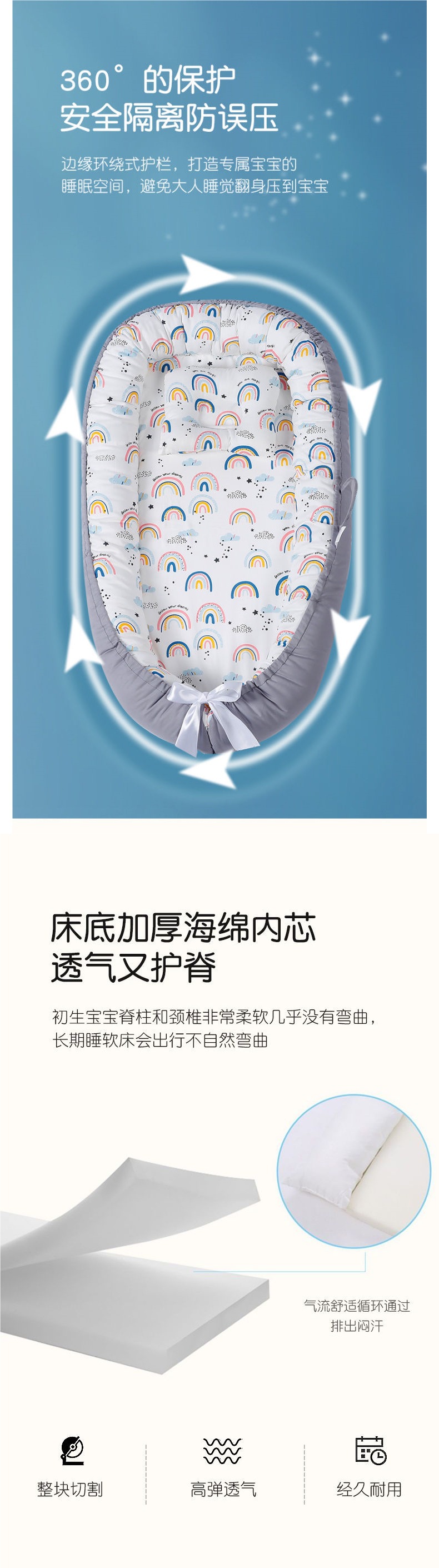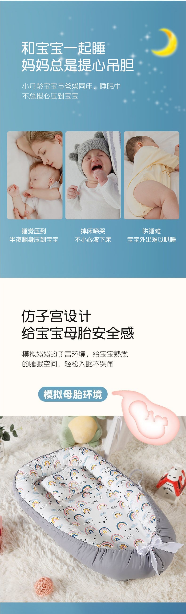 Cama de bebé portátil desmontable transfronteriza en la cama media para recién nacidos acostados para dormir
