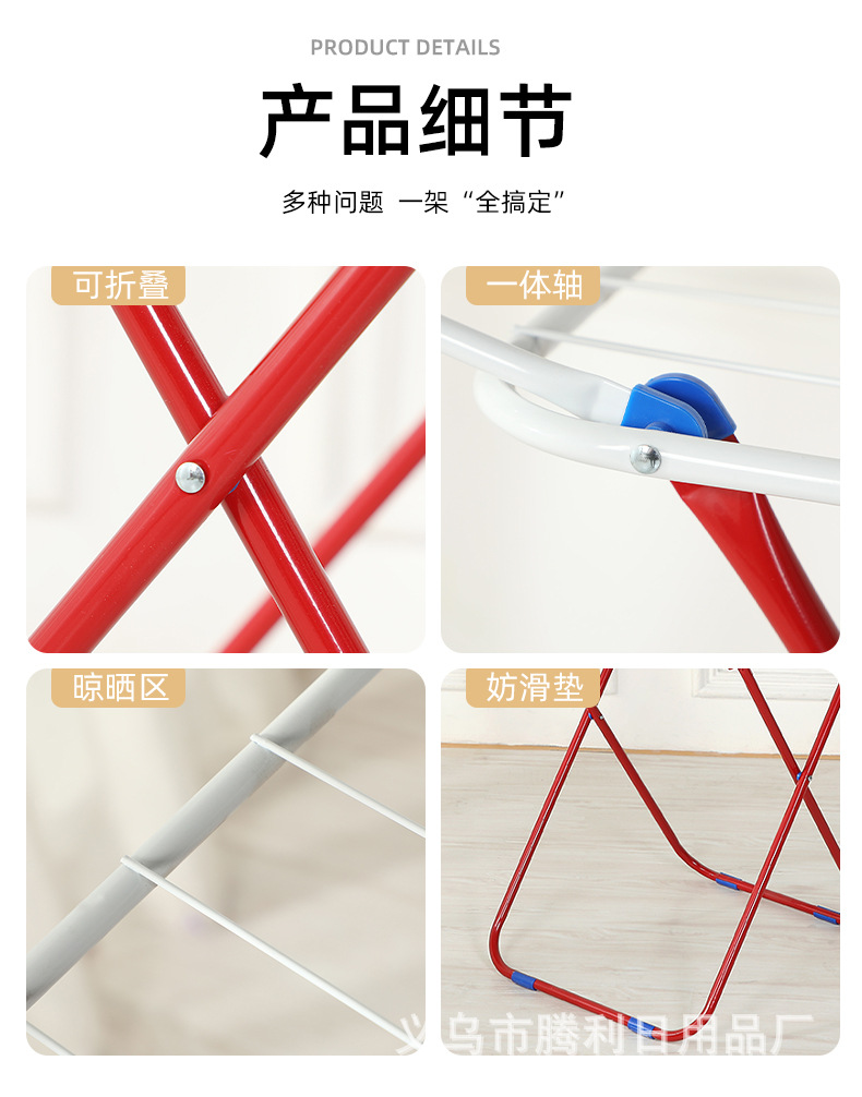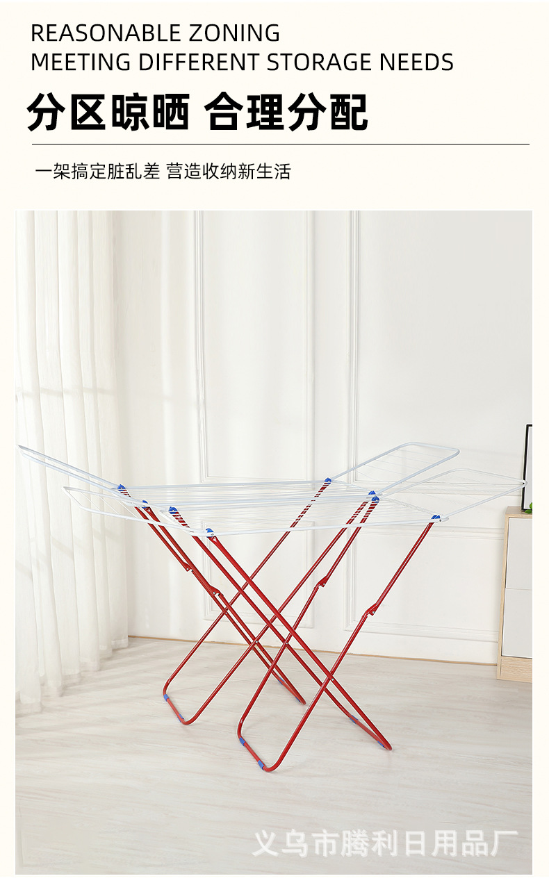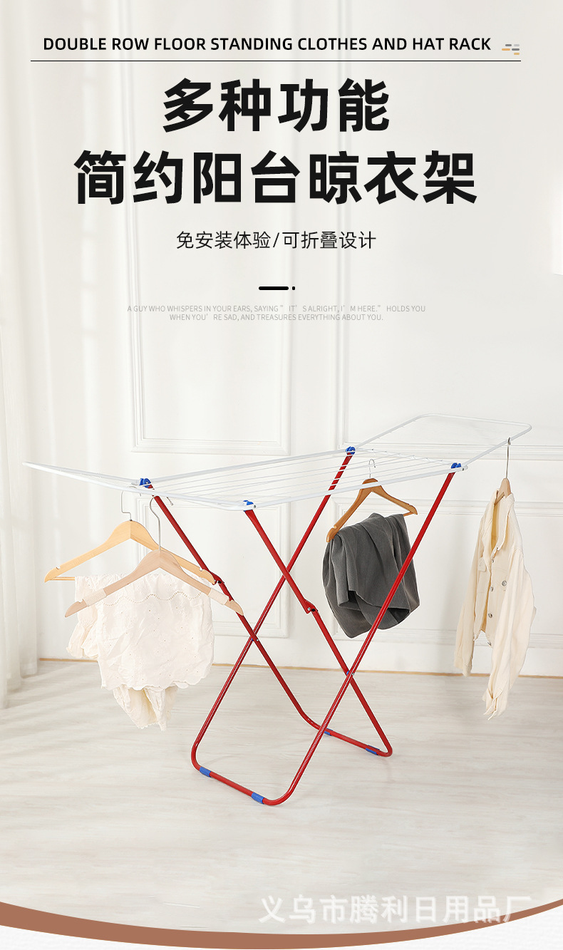Suministro directo de fábrica perchero plegable para balcón transfronterizo nuevo estante de secado multifuncional estante plegable de piso en forma de ala