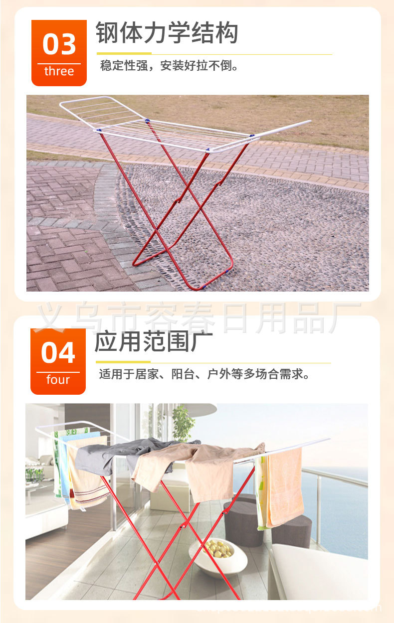Simple piso percha balcón del hogar plegable tendedero ala rojo y blanco tendedero peluquería toallero