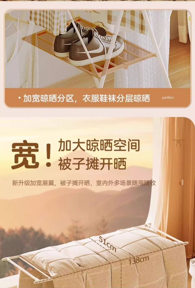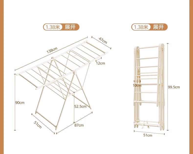 | Color | 1.38m de largo crema blanca suelo percha de secado |