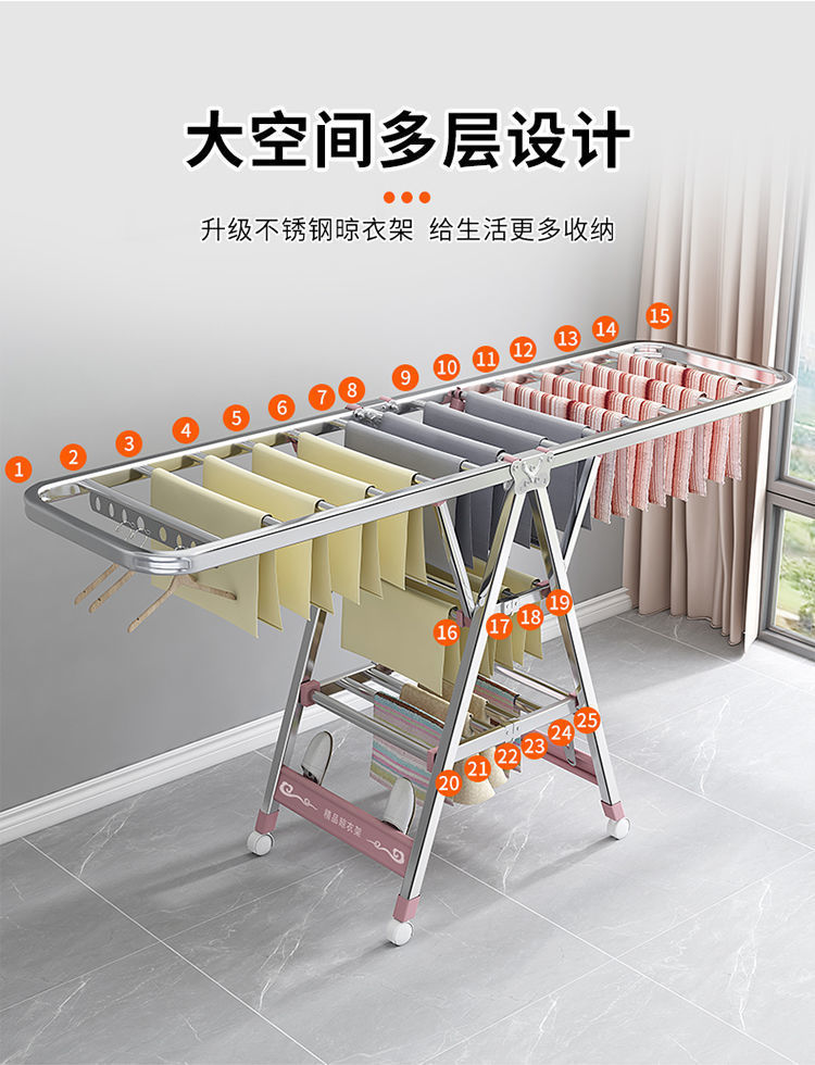 Percha de secado plegable interior y exterior de acero inoxidable balcón doméstico barra de ropa fresca colcha de secado para bebés