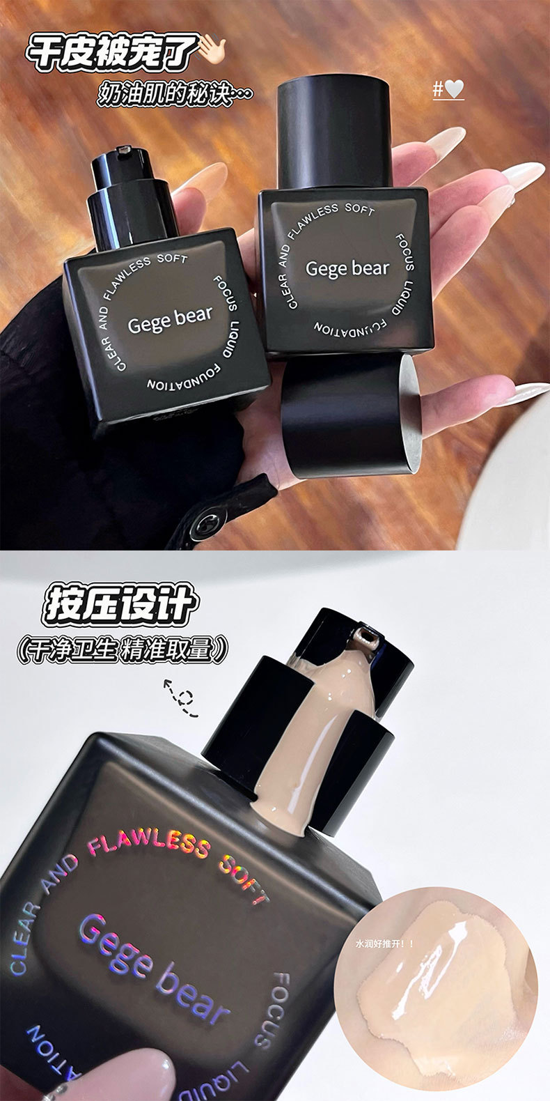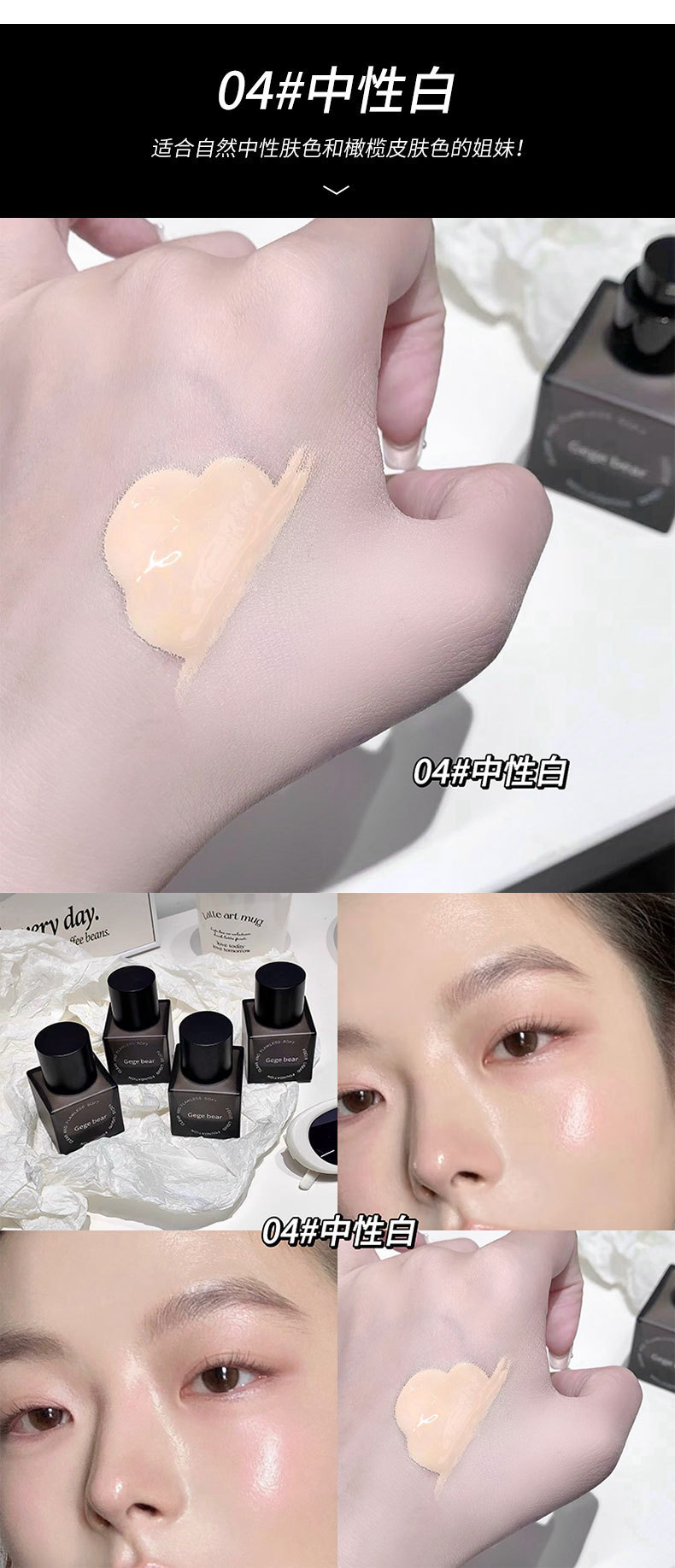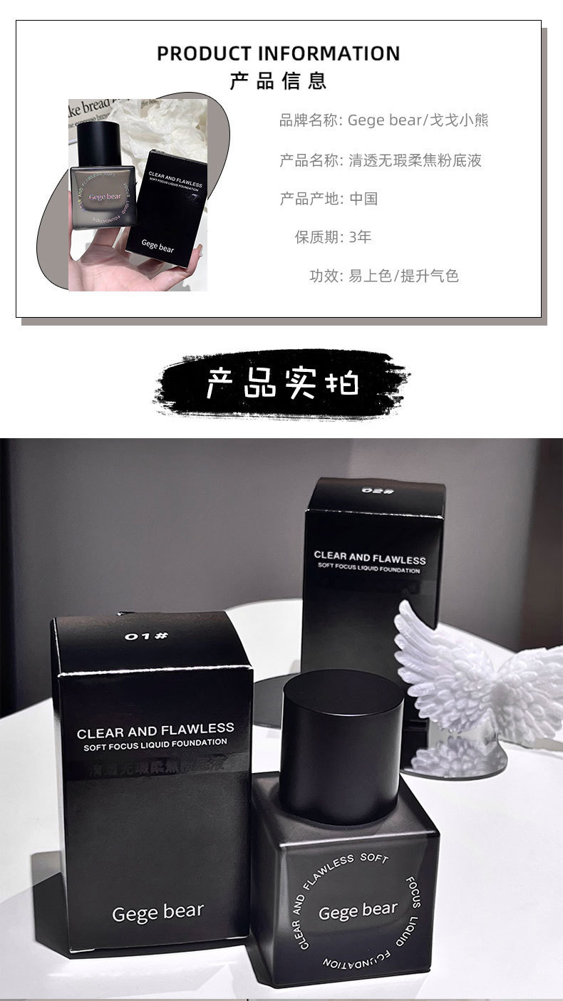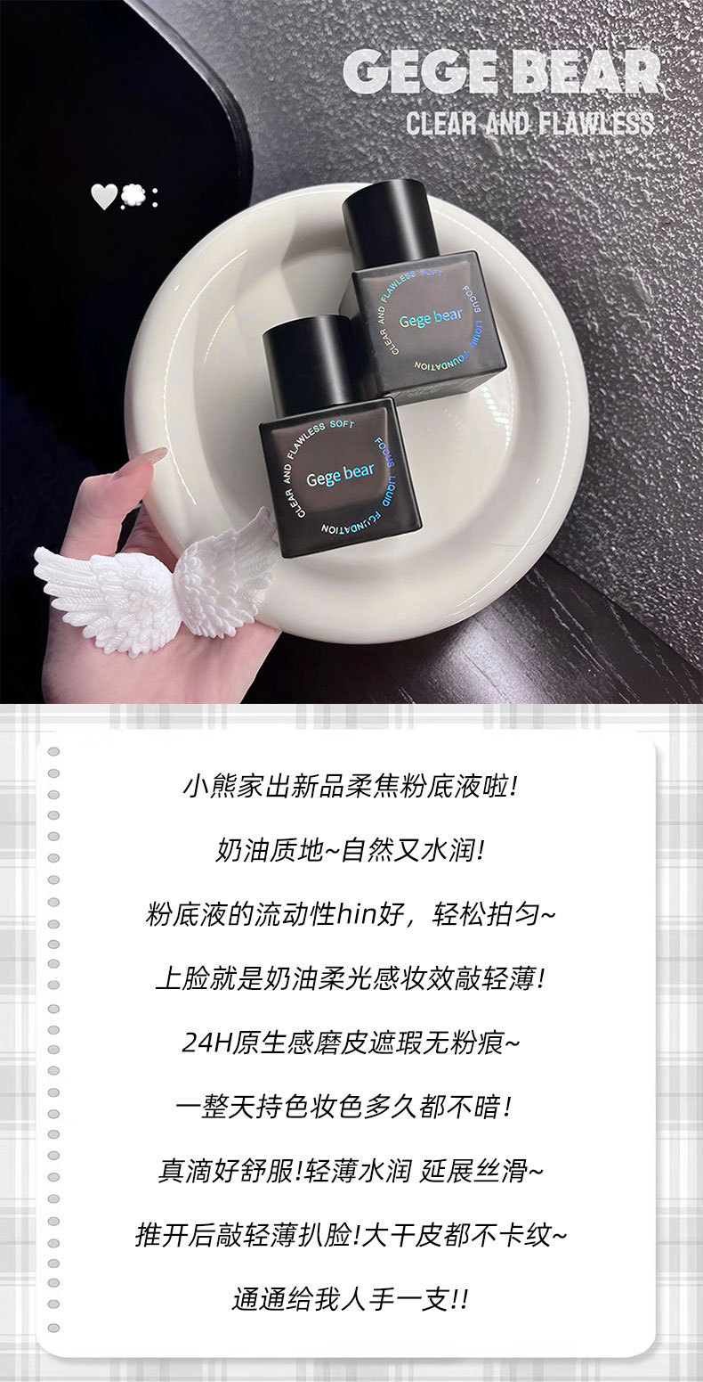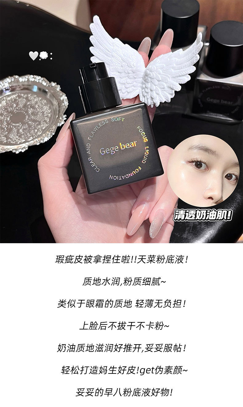 Gege bear base líquida de coque suave transparente, hidratante, hidratante, impermeable, crema duradera para la piel.