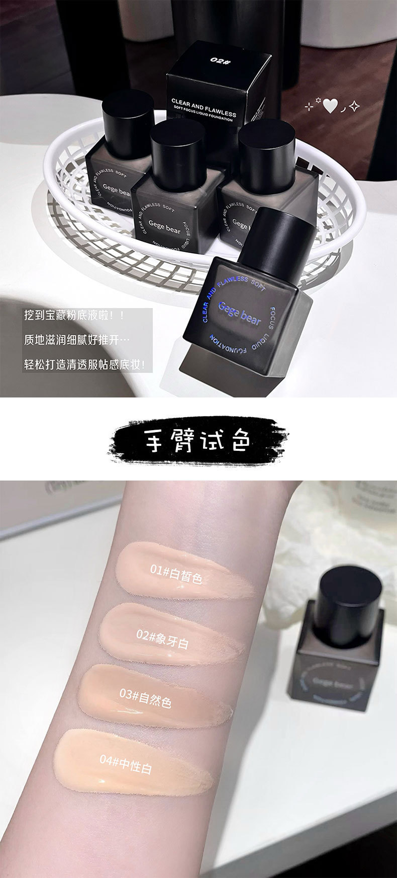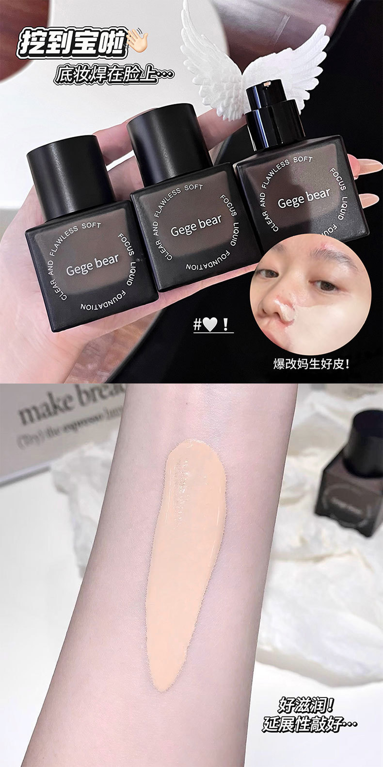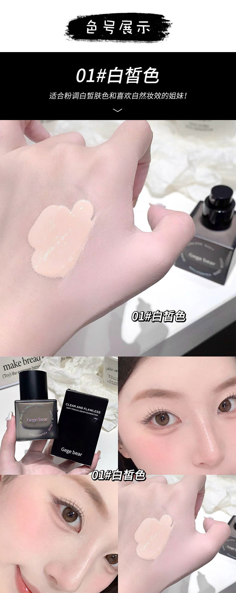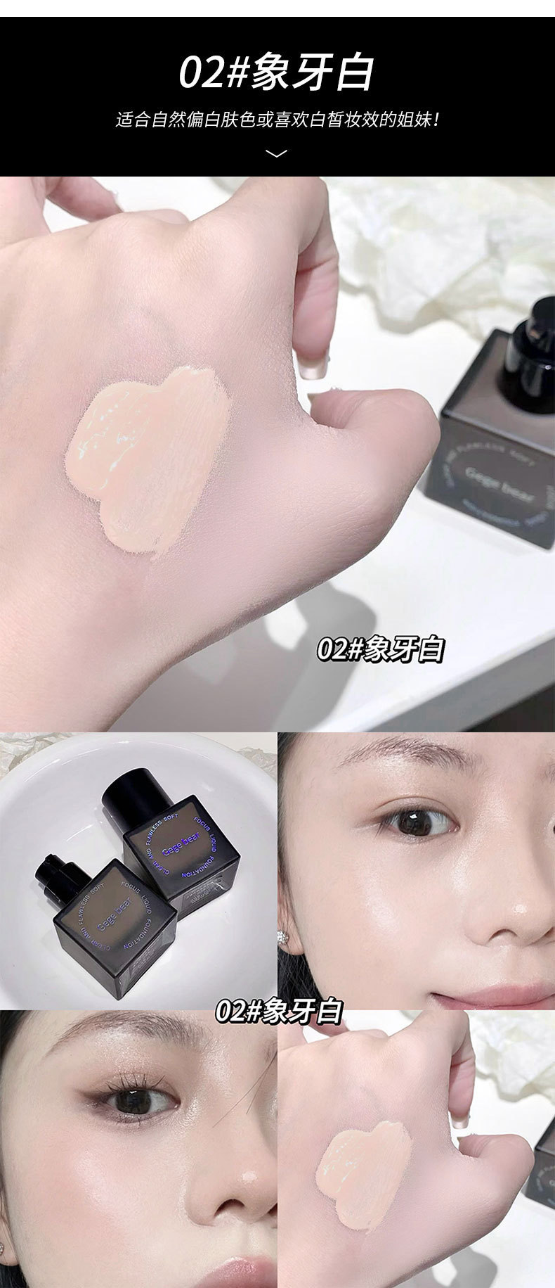 Gege bear base líquida de coque suave transparente, hidratante, hidratante, impermeable, crema duradera para la piel.