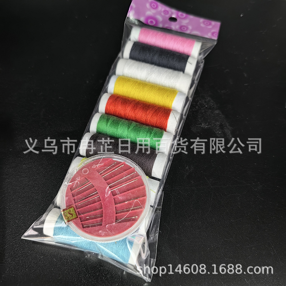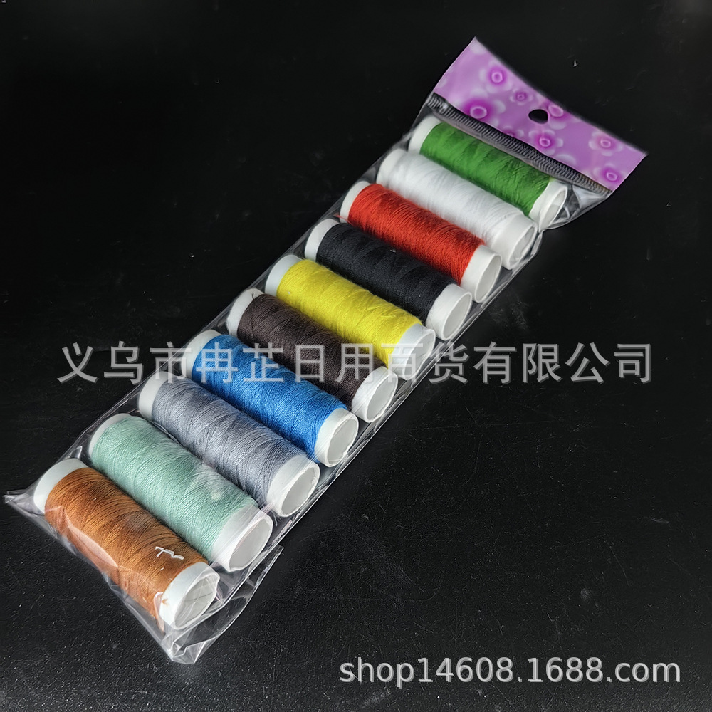 Fábrica de venta al por mayor de sutura de mano doméstica hilo de coser pequeño rollo de poliéster hilo de coser herramientas de reparación con tijeras