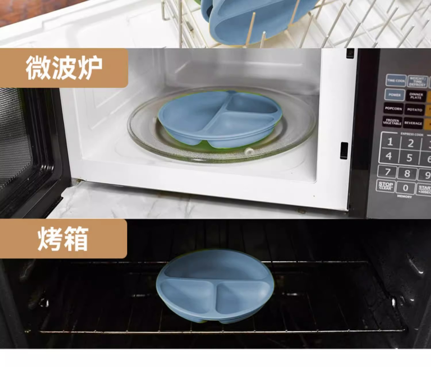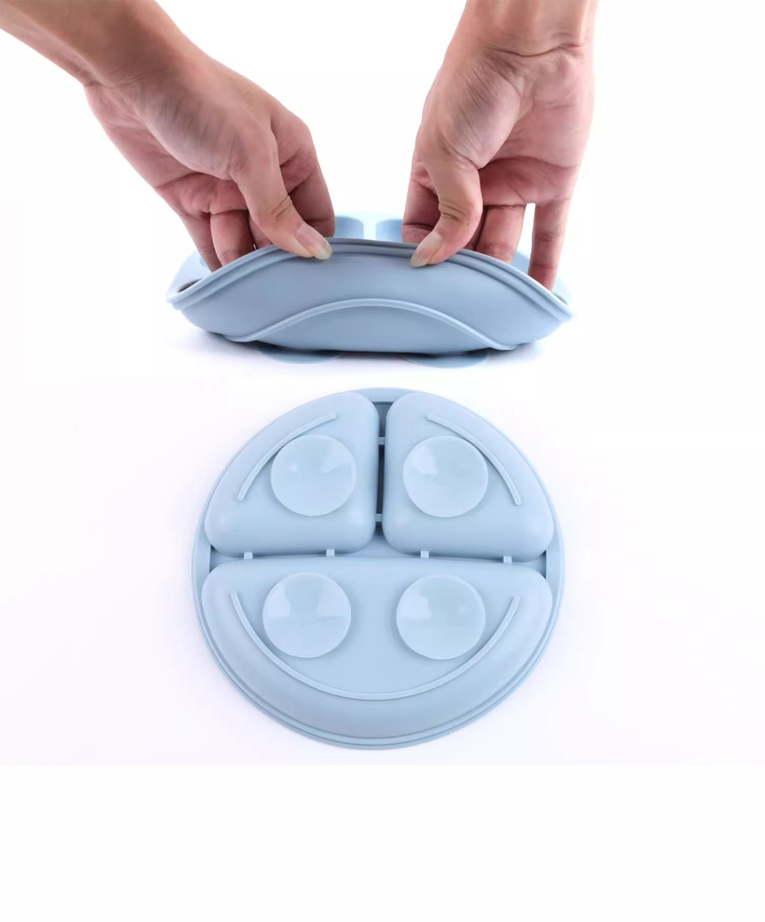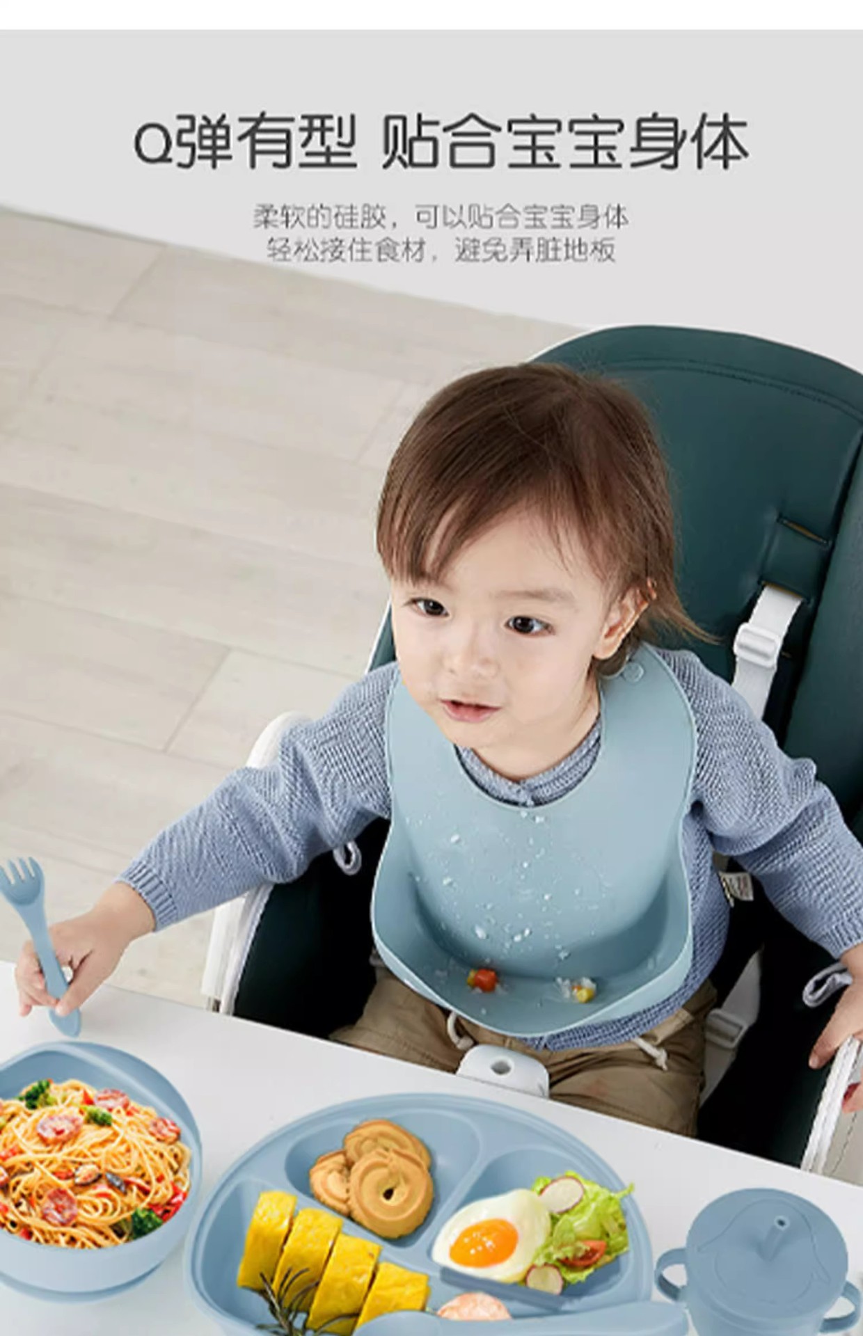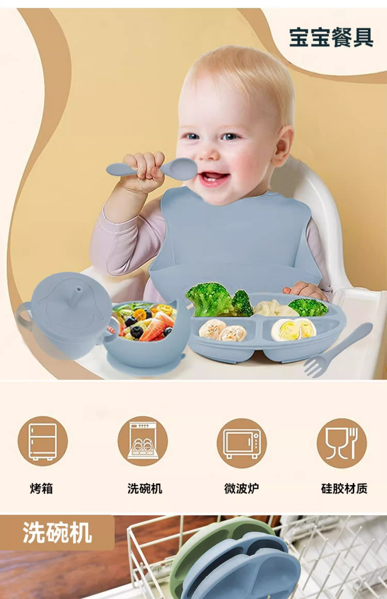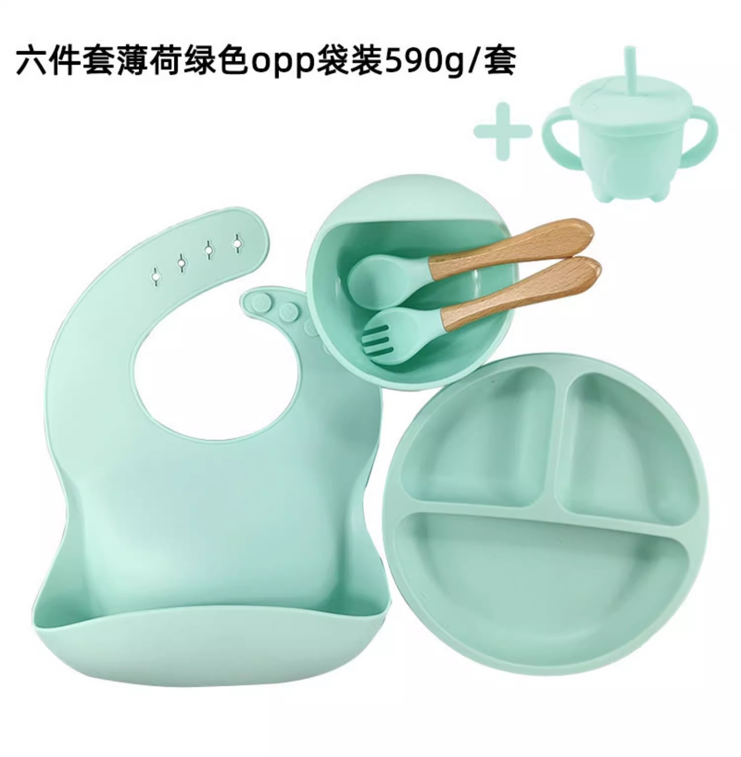De silicona de grado alimenticio babero para bebé vajilla dividida Juego de 8 piezas de bandeja de comedor de silicona tipo ventosa tazón de silicona para niños cuchara tenedor