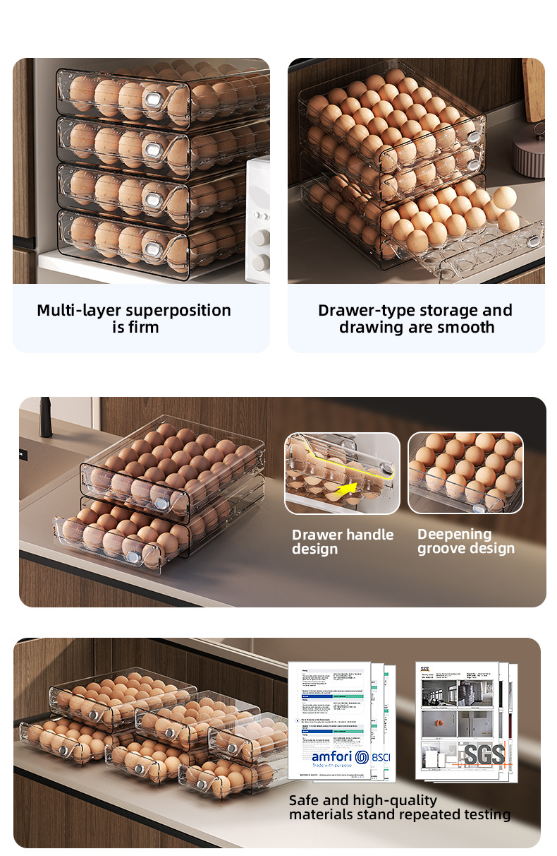 Caja de almacenamiento de huevos Caja de conservación especial para refrigerador Caja de huevos de cocina Caja de huevos transparente de múltiples especificaciones con cajón de doble capa