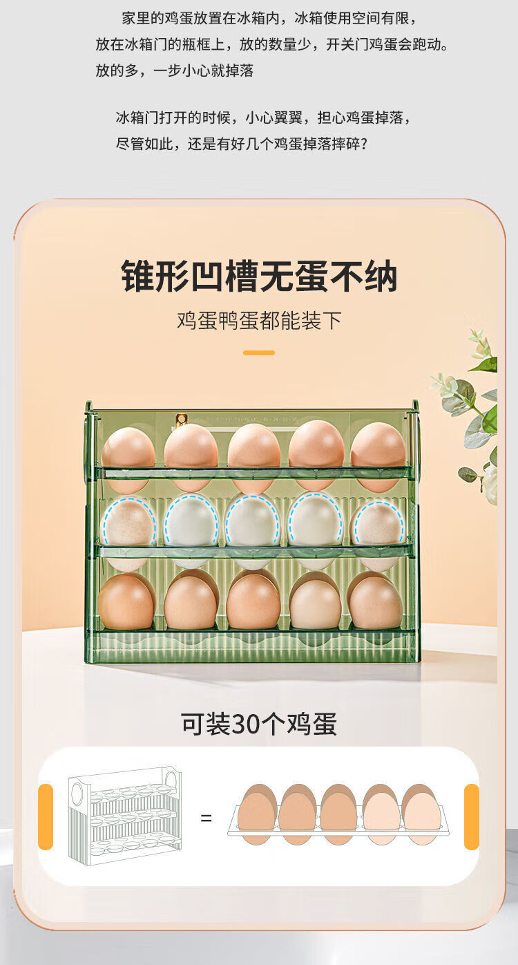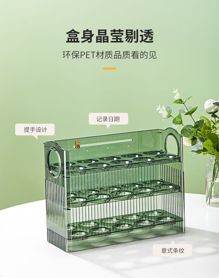 Caja de almacenamiento de huevos, puerta lateral del refrigerador, estante de almacenamiento, bandeja de huevos de cocina, caja de conservación fresca, caja de huevos, lateral de rebote automático