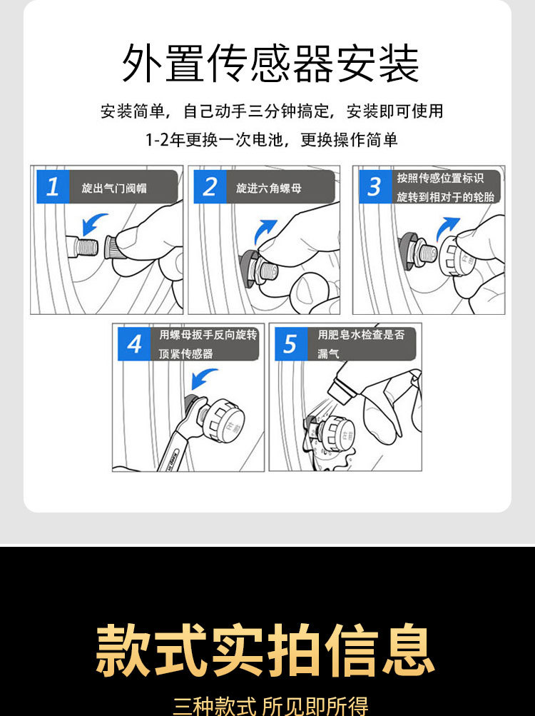 Sensor de monitoreo de presión de neumáticos de motocicleta externo incorporado detector de carga de neumáticos de reemplazo de neumáticos para vehículo eléctrico