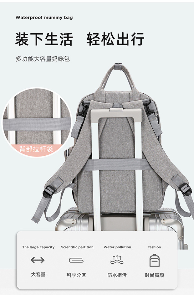 Nuevo tipo transfronterizo de gran capacidad multifuncional bolsa portátil para mamás, bolsa de parto, mochila de hombro para mamás y bebés, almohadilla de orina