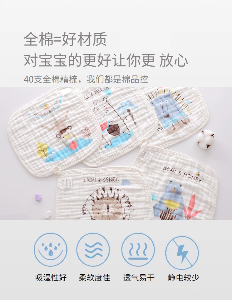 Toalla cuadrada de gasa de seis capas de algodón puro para niños, para lavarse la cara, toalla pequeña de gasa de burbujas absorbente para bebés, absorbe el agua rápidamente.