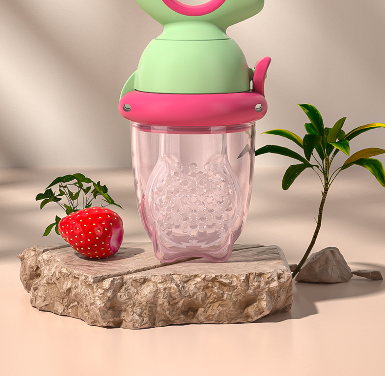 Bebé muerde frutas y verduras, bolsa de música, come suplementos alimenticios de frutas, bebé come jugo, pezón de mordedor, muerde, juega con el palo molar