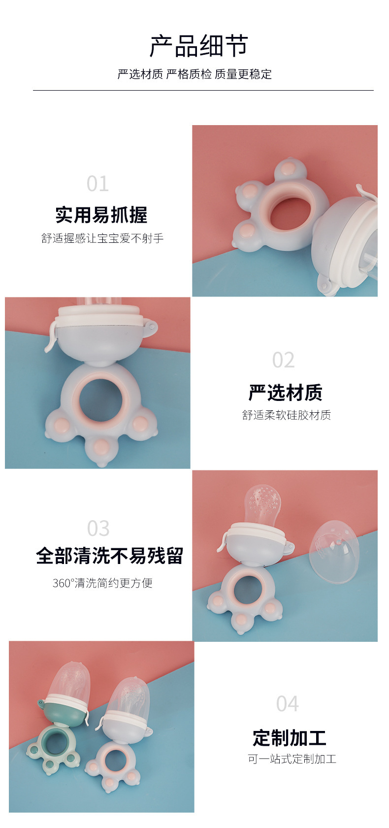 Nueva bolsa de mordida de frutas y verduras de empuje de silicona molar, mordida, mordida, mordida, mordedor para bebé, bolsa de malla de silicona, chupete
