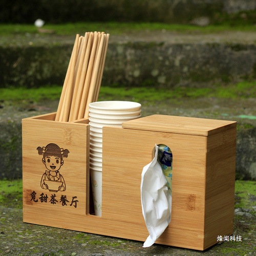 Caja de palillos de bambú para toalla de papel de restaurante comercial, caja de palillos de restaurante multifuncional, caja de almacenamiento de palillos de fideos de restaurante